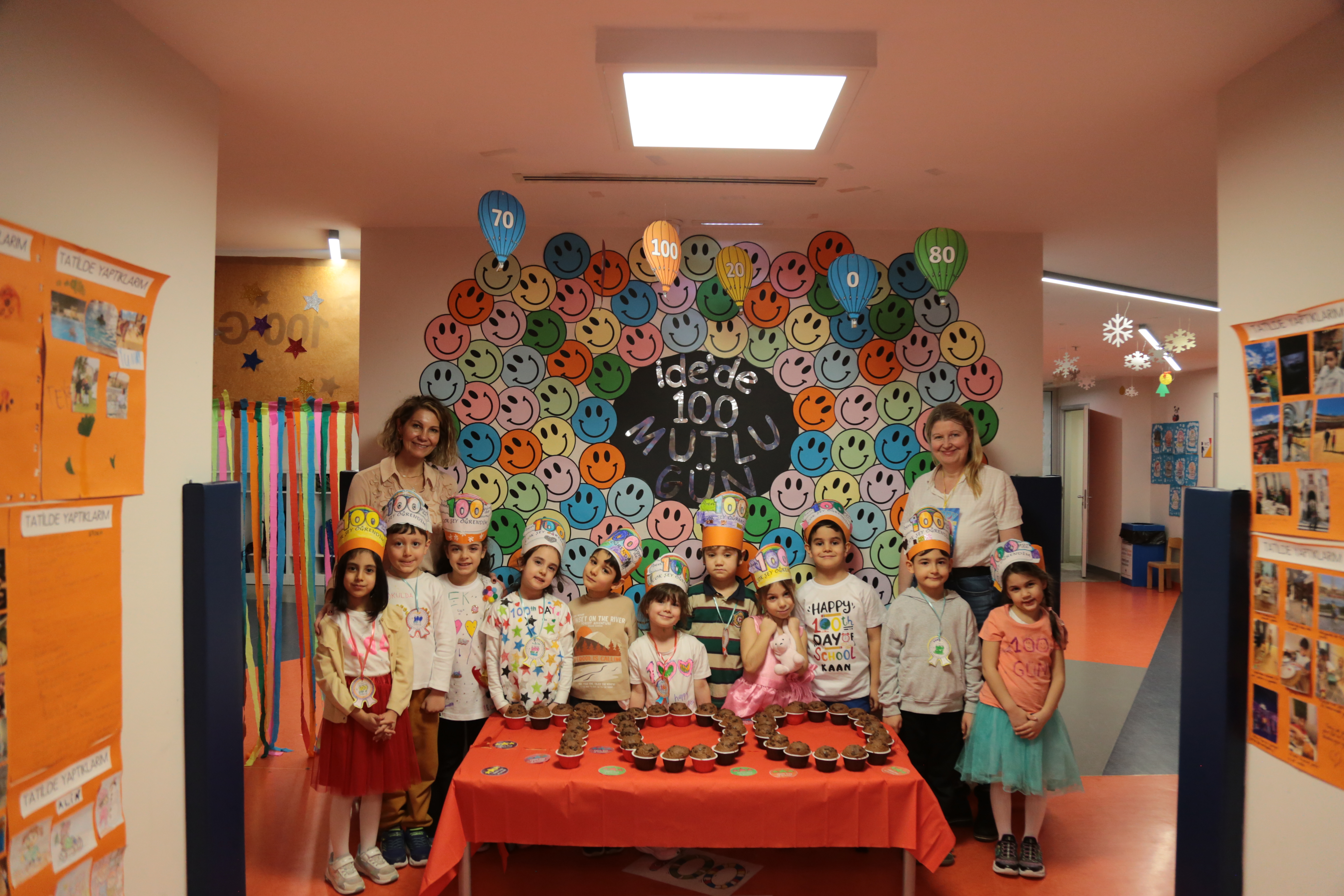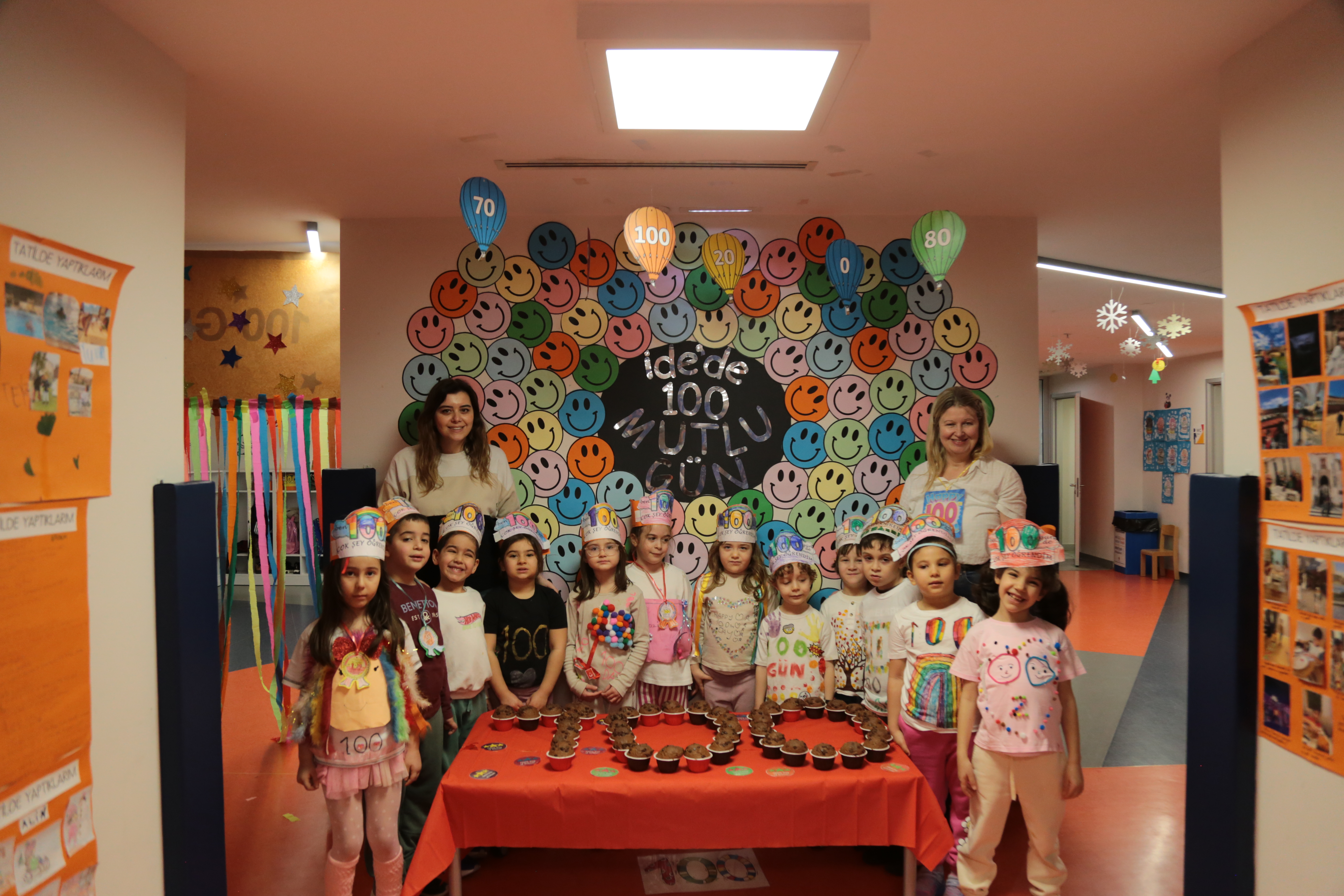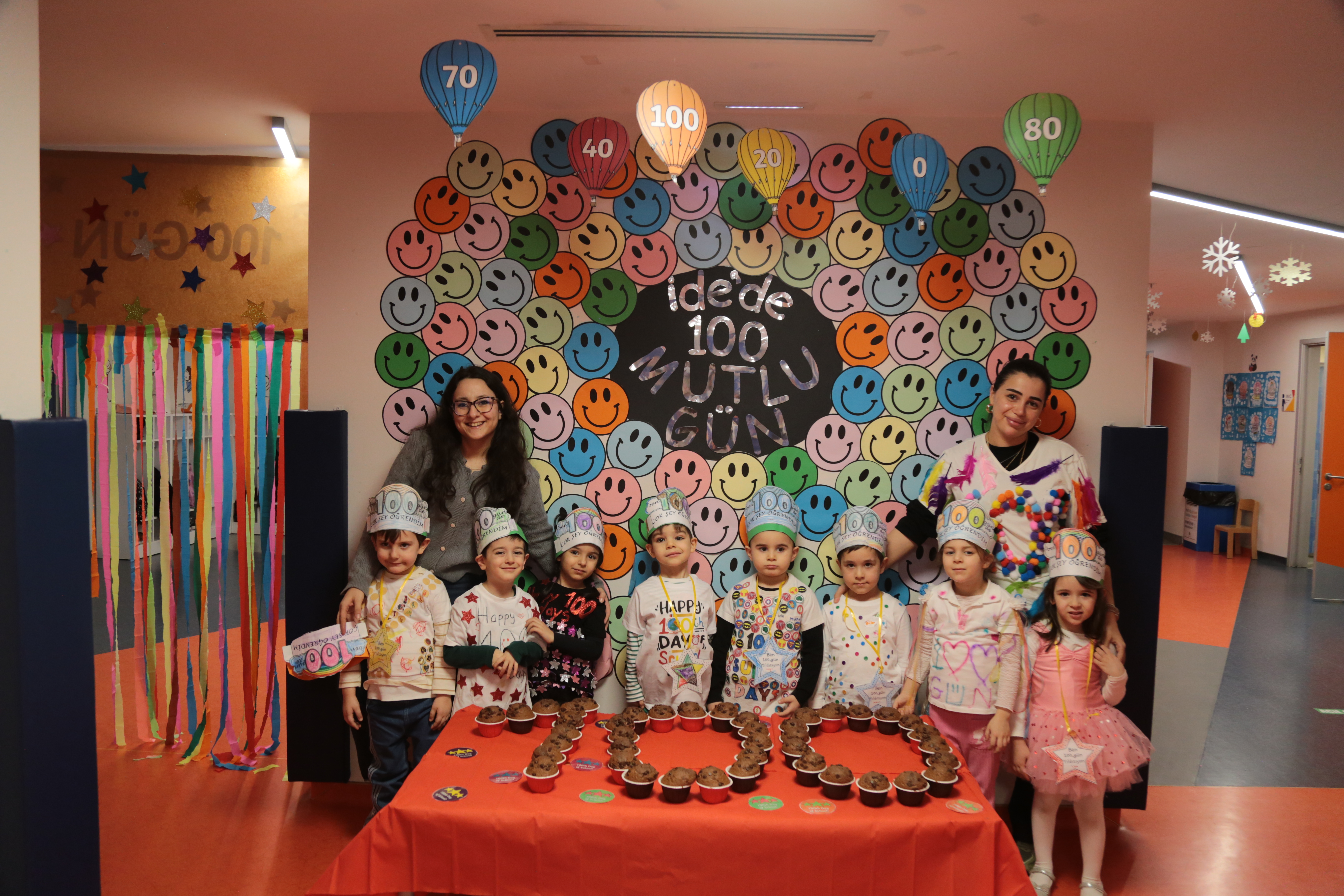 ide okulları anaokulu öğrencileri, eğitim yılının önemli kilometre taşlarından biri olan 100. gün coşkusunu çeşitli öğrenme çalışmalarıyla kutladı. Minik ideliler, okulda geçirdikleri günleri düzenli olarak sayıp işaretleyerek 100 güne ulaşmanın heyecanını birlikte yaşadı.