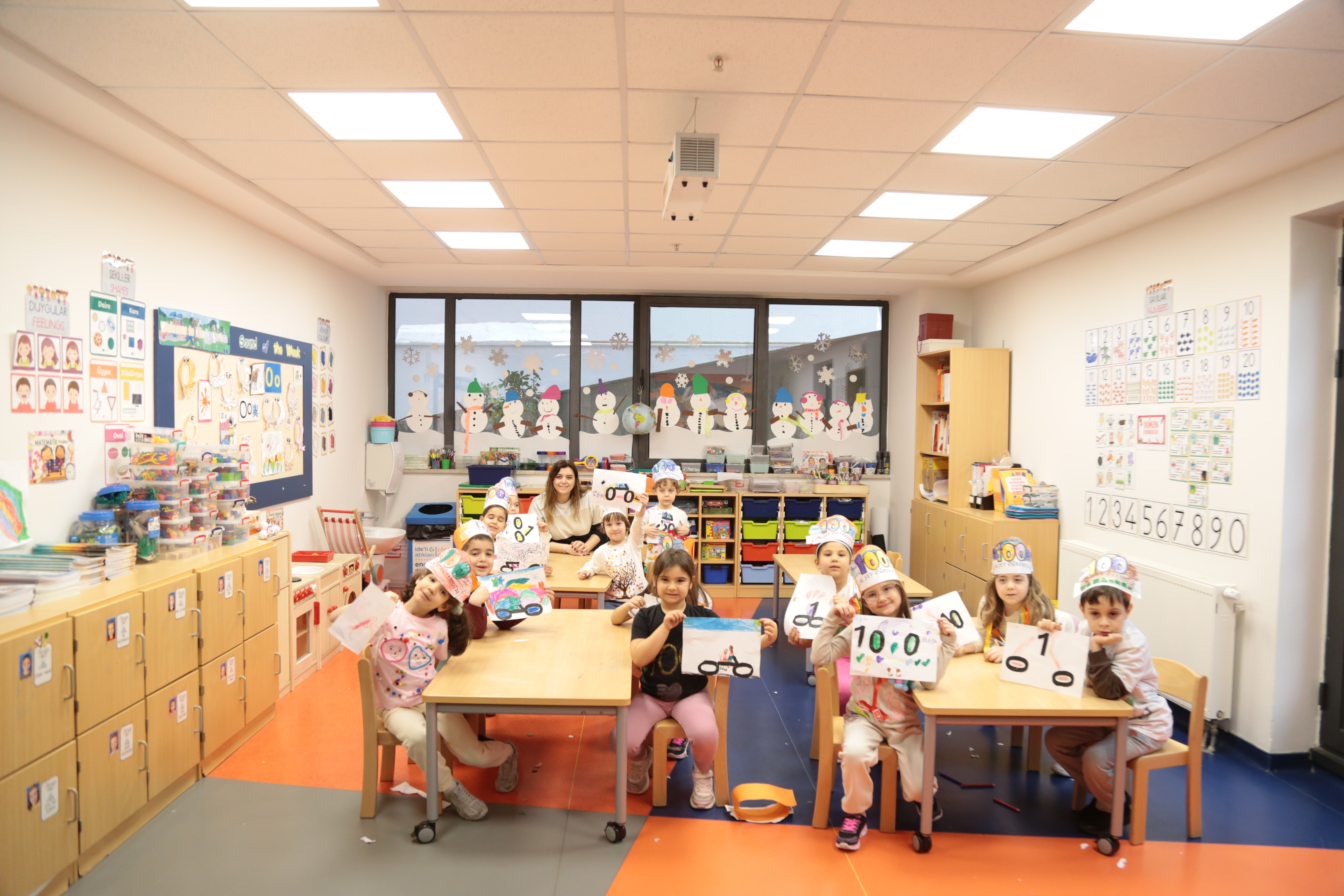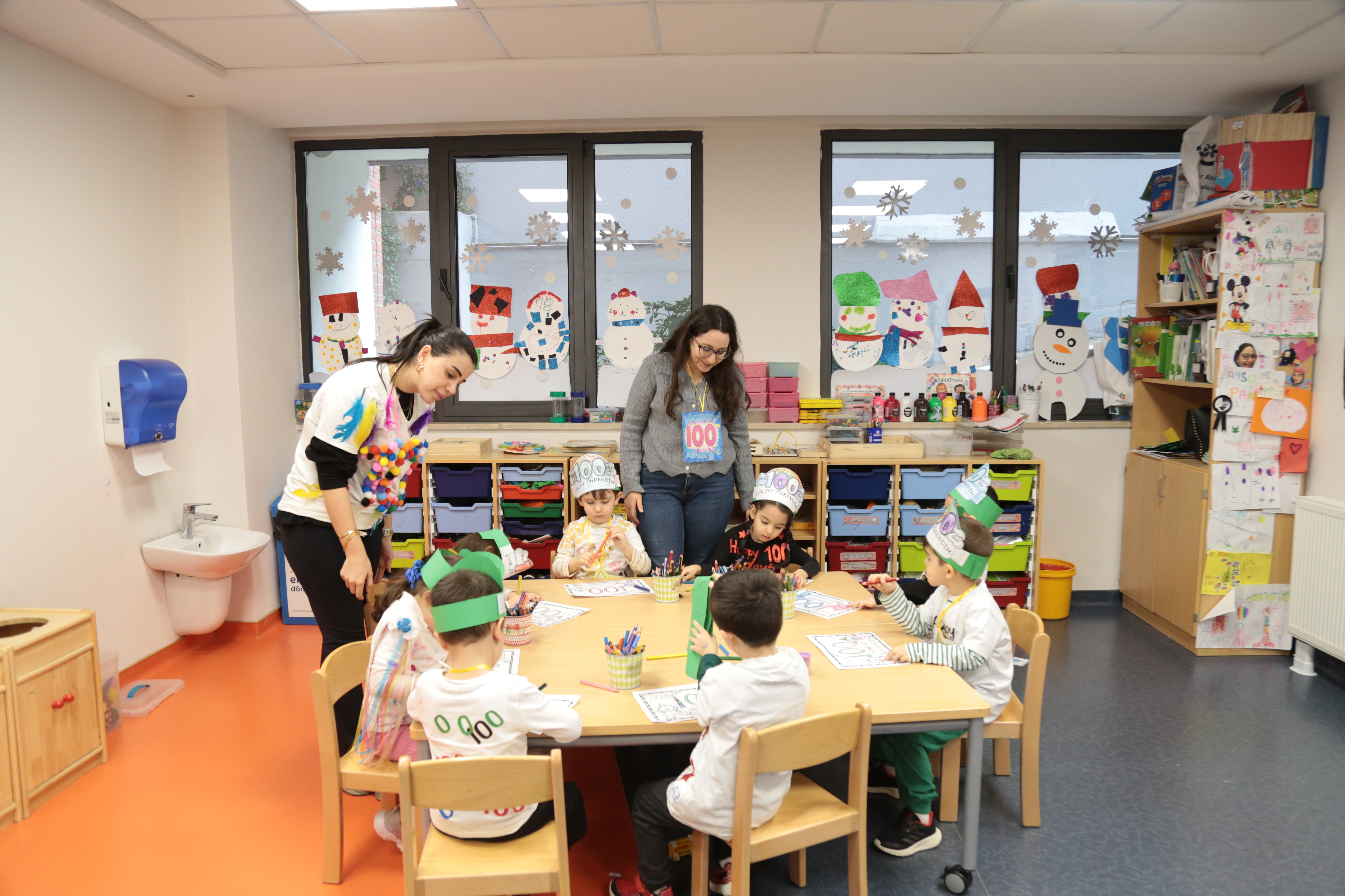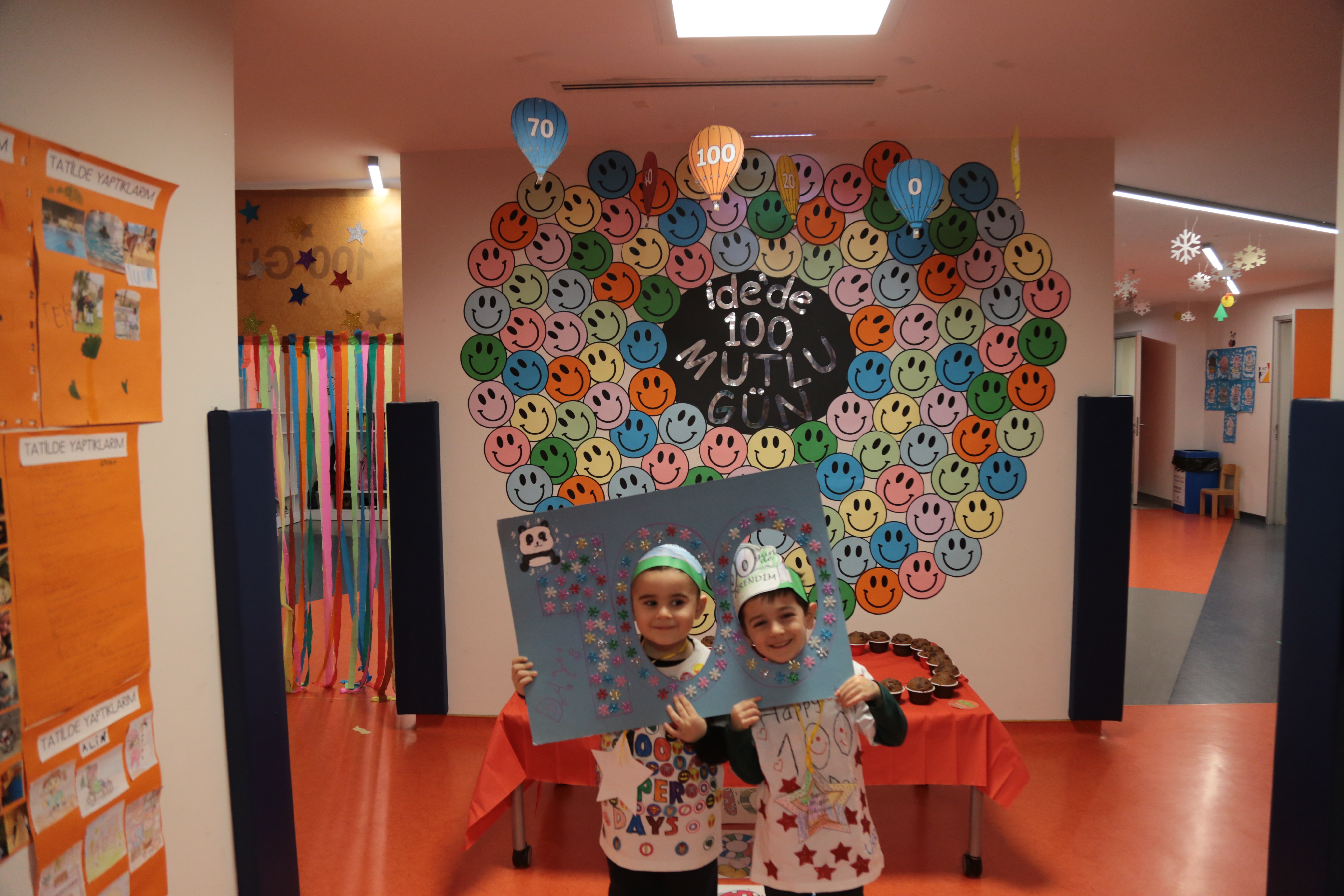 ide okulları anaokulu öğrencileri, eğitim yılının önemli kilometre taşlarından biri olan 100. gün coşkusunu çeşitli öğrenme çalışmalarıyla kutladı. Minik ideliler, okulda geçirdikleri günleri düzenli olarak sayıp işaretleyerek 100 güne ulaşmanın heyecanını birlikte yaşadı.