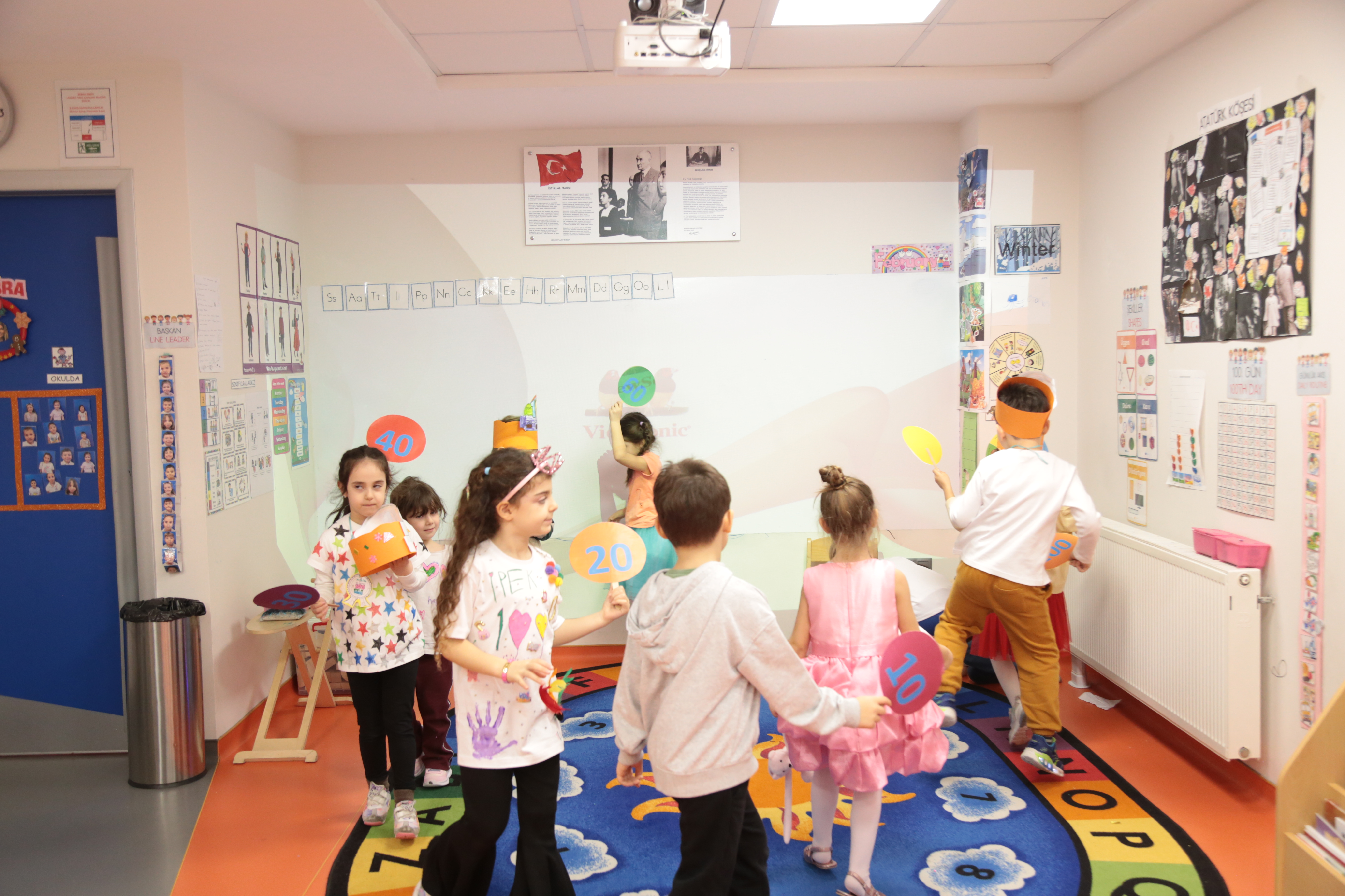 Okul öncesi dönemde sayı kavramı, çocukların nesnelerle kurdukları ilişkiler aracılığıyla somut ve işlevsel bir şekilde gelişmektedir. Bu doğrultuda gerçekleştirilen çalışmalar kapsamında öğrenciler, 10’ar 10’ar ve 5’er 5’er ritmik sayma etkinlikleri yaparak sayıları gruplandırma, sayılar arasındaki ilişkiyi fark etme, bir önceki ve bir sonraki sayıyı tanıma ile artan ve azalan sayı dizilerini anlama becerilerini pekiştirdiler.