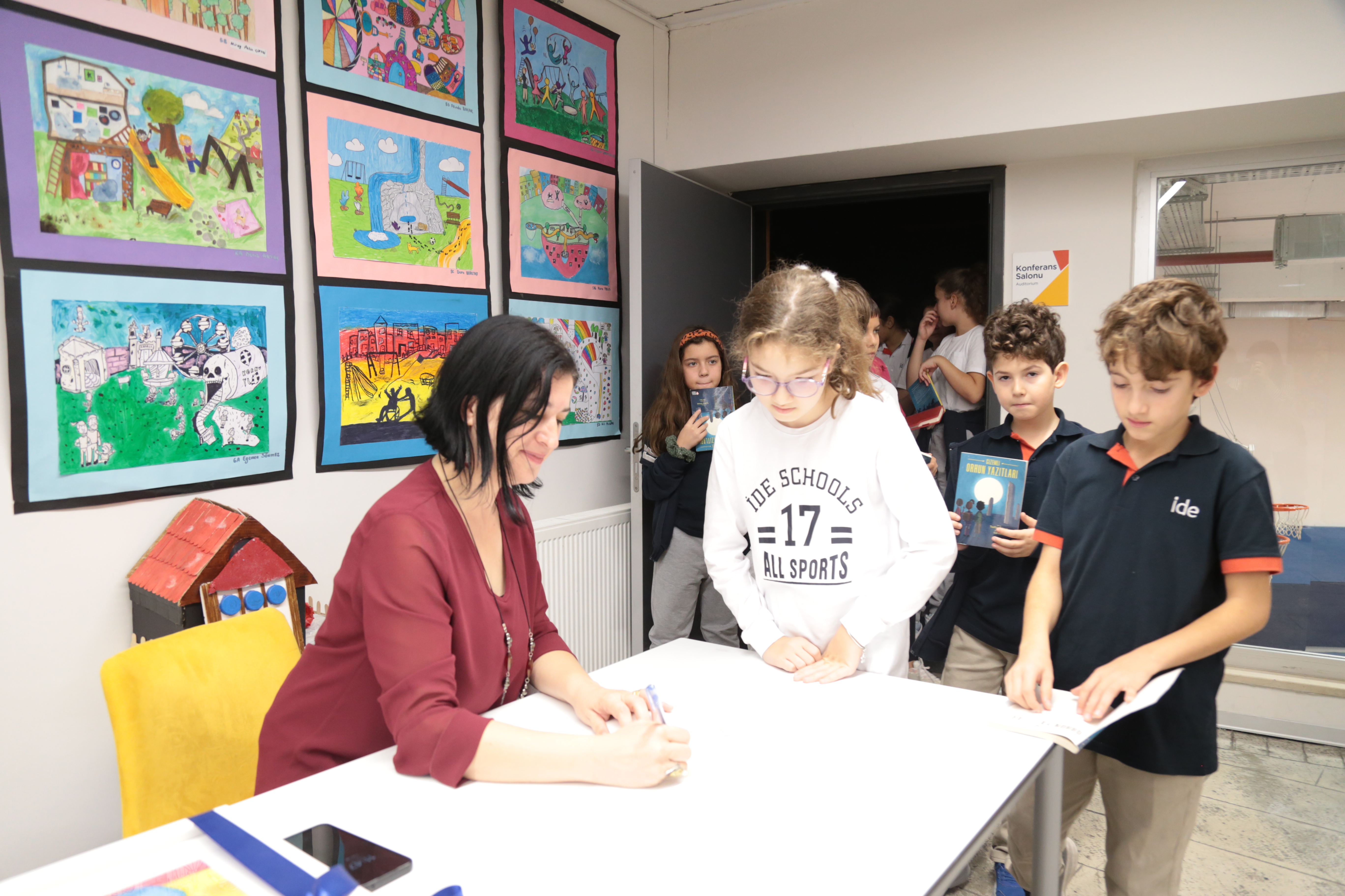 Söyleşinin sonunda öğrencilerimiz, büyük bir heyecanla kitaplarını yazara imzalatarak bu anlamlı günü unutulmaz bir anıya dönüştürdüler. ide okulları, öğrencilerini düşünsel, sanatsal ve kültürel olarak besleyen etkinliklerle öğrenme yolculuğunu zenginleştirmeyi sürdürüyor.