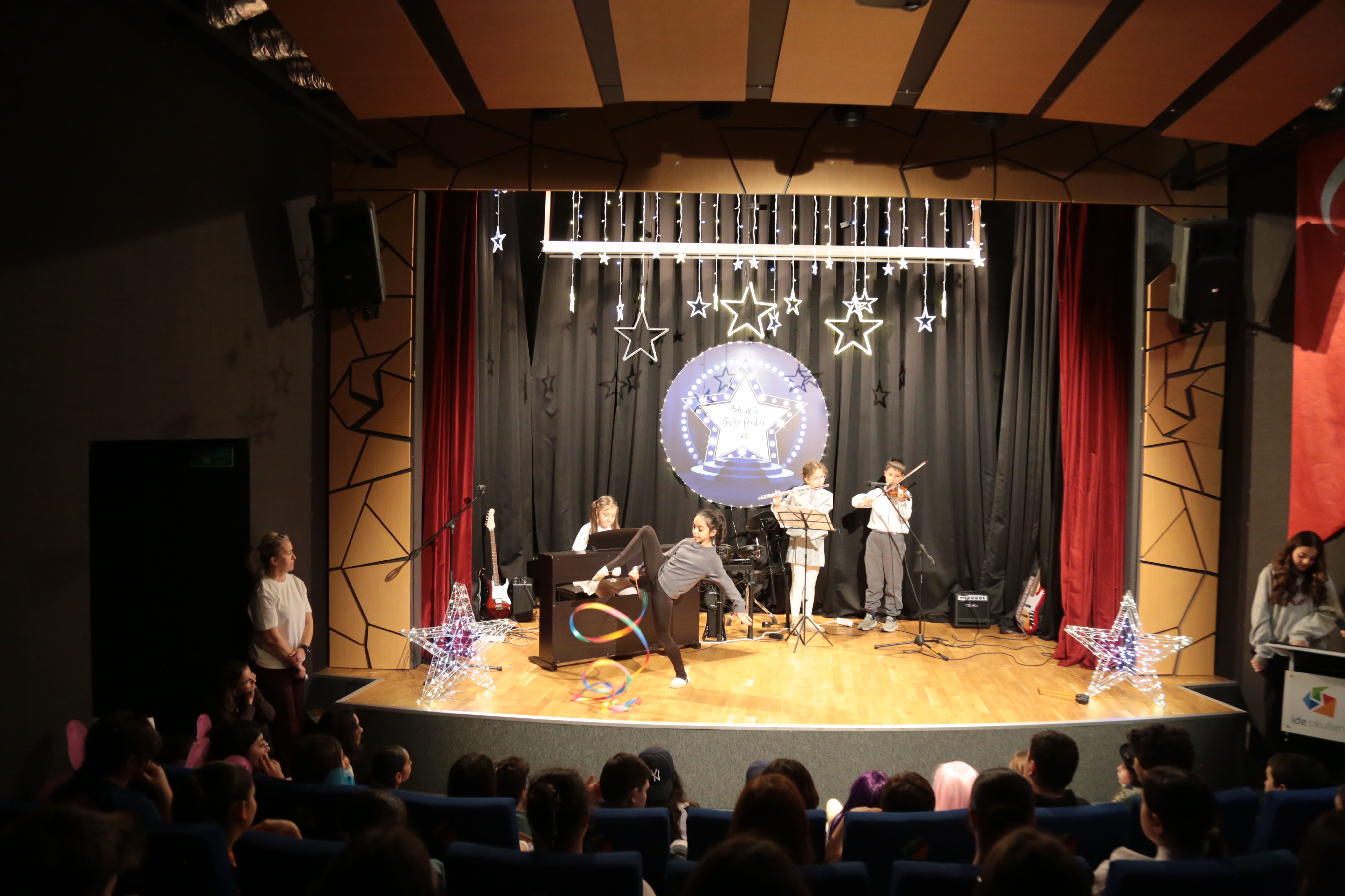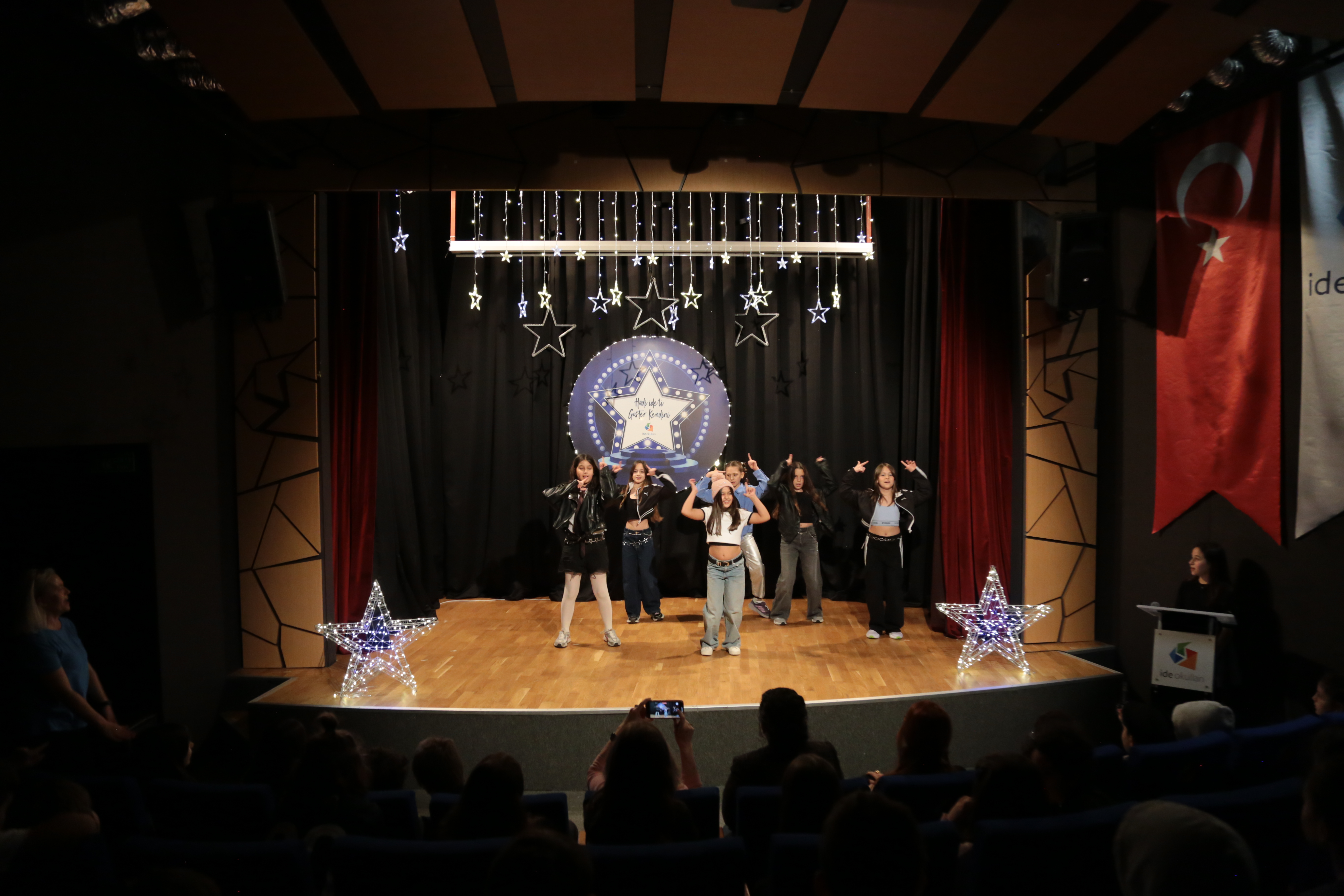 ide okulları olarak gelenekselleştirdiğimiz “Hadi ide’li Göster Kendini” performans etkinliği, bu yıl ilkokul ve ortaokul öğrencilerimizin katılımıyla farklı zaman dilimlerinde coşkulu anlara sahne oldu. Öğrencilerimize ilgi ve yeteneklerini özgürce sergileyebilecekleri bir platform sunmayı amaçlayan organizasyon, okul kültürümüzün en dinamik etkinliklerinden biri olarak büyük ilgi gördü.