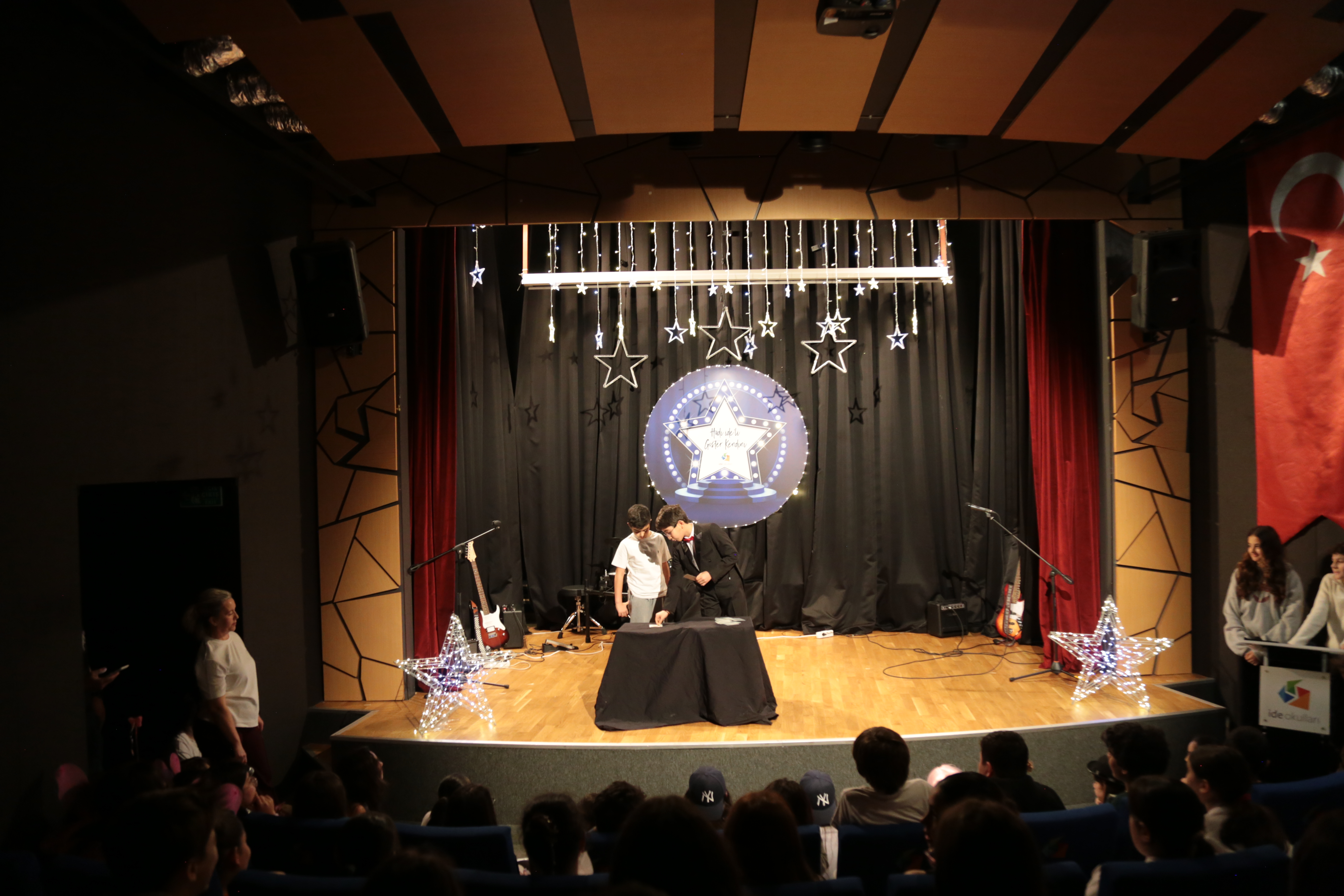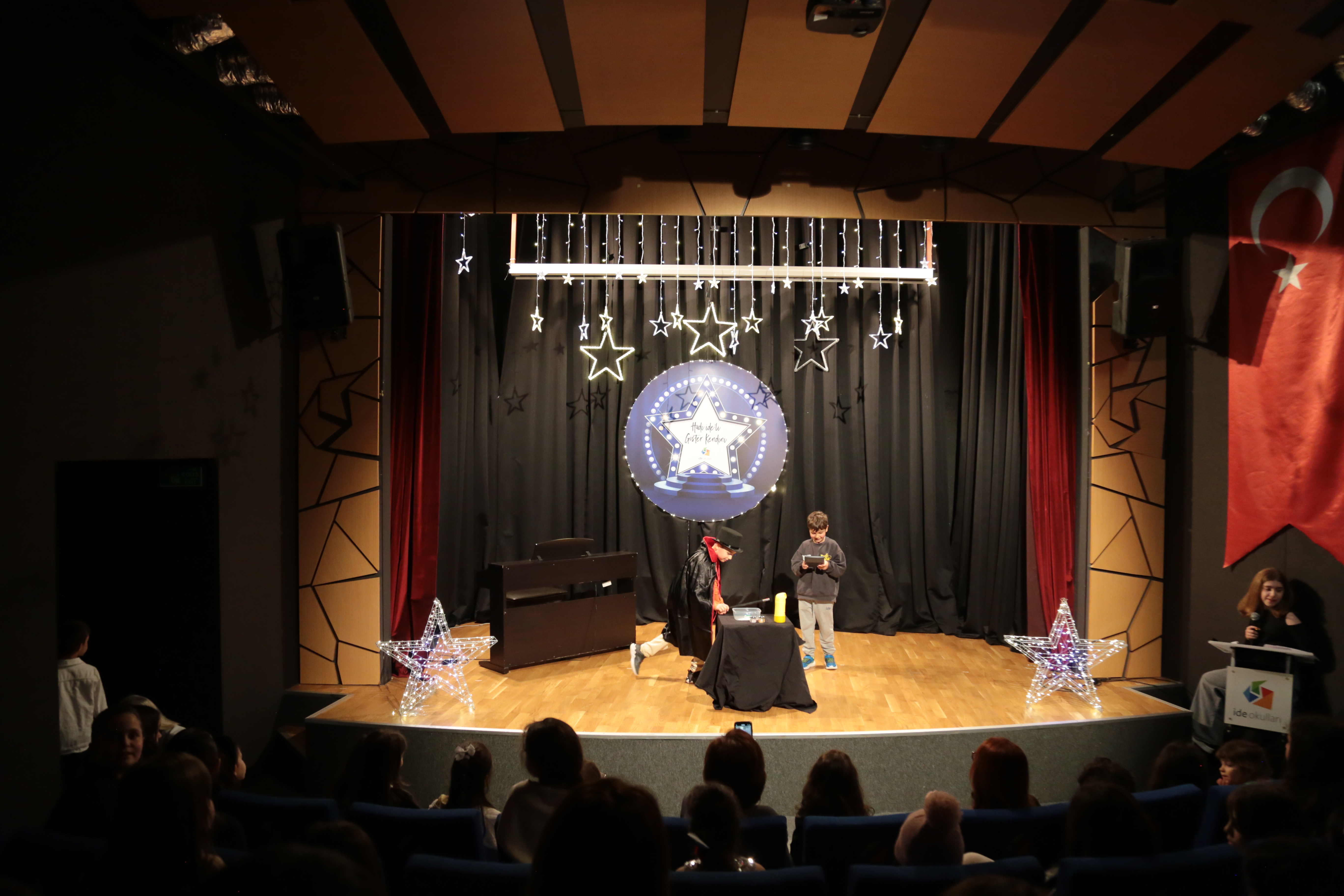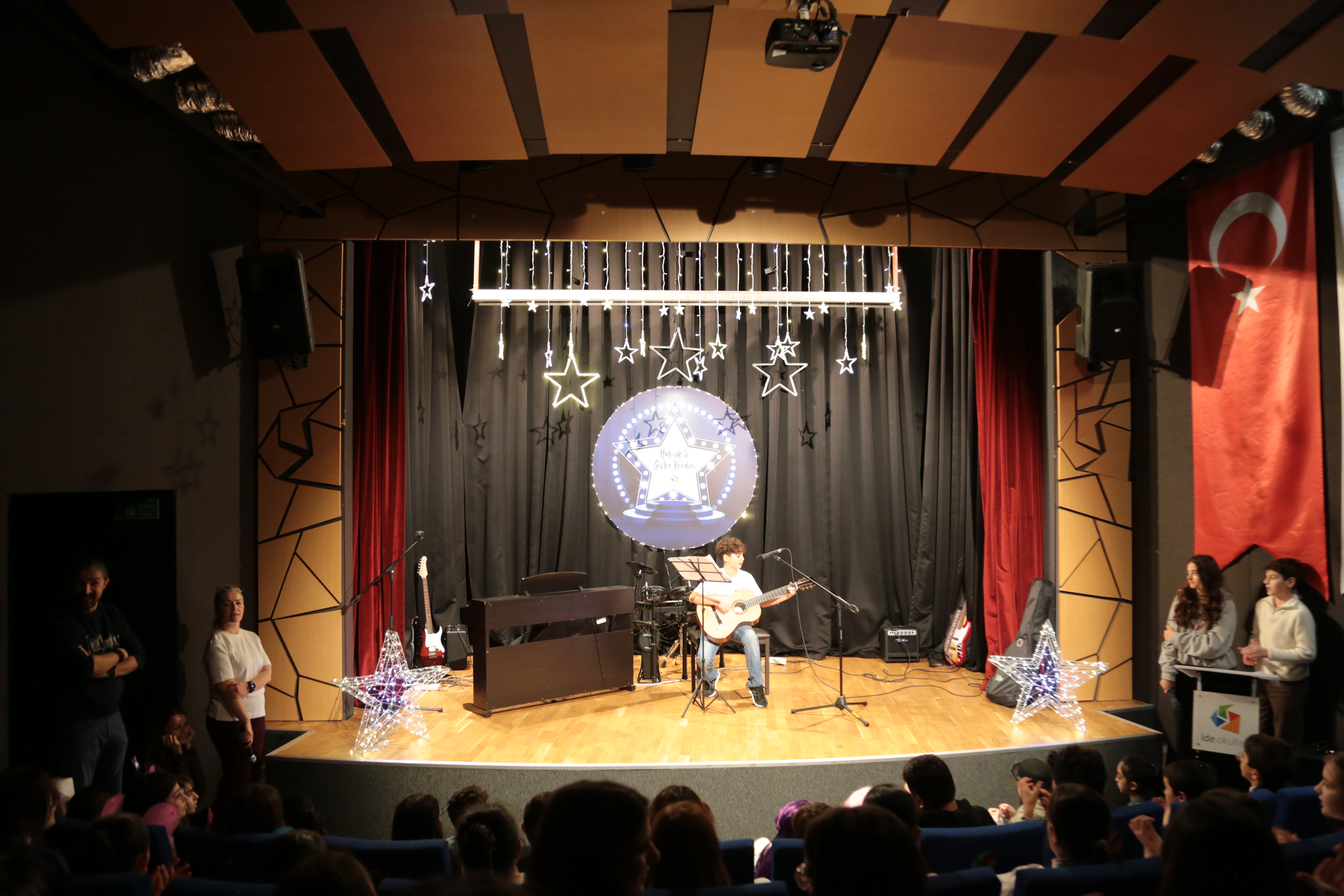 İlkokul öğrencilerimiz ise dans gösterileri, sihirbazlık performansları ve enstrüman dinletileriyle programa renk kattı. Gitar, keman ve piyano eşliğinde gerçekleştirilen müzik sunumları ile şarkı performansları, izleyicilere keyifli anlar yaşattı. Enerjisi yüksek atmosfer, alkışlar ve coşkulu katılımla program boyunca devam etti.
