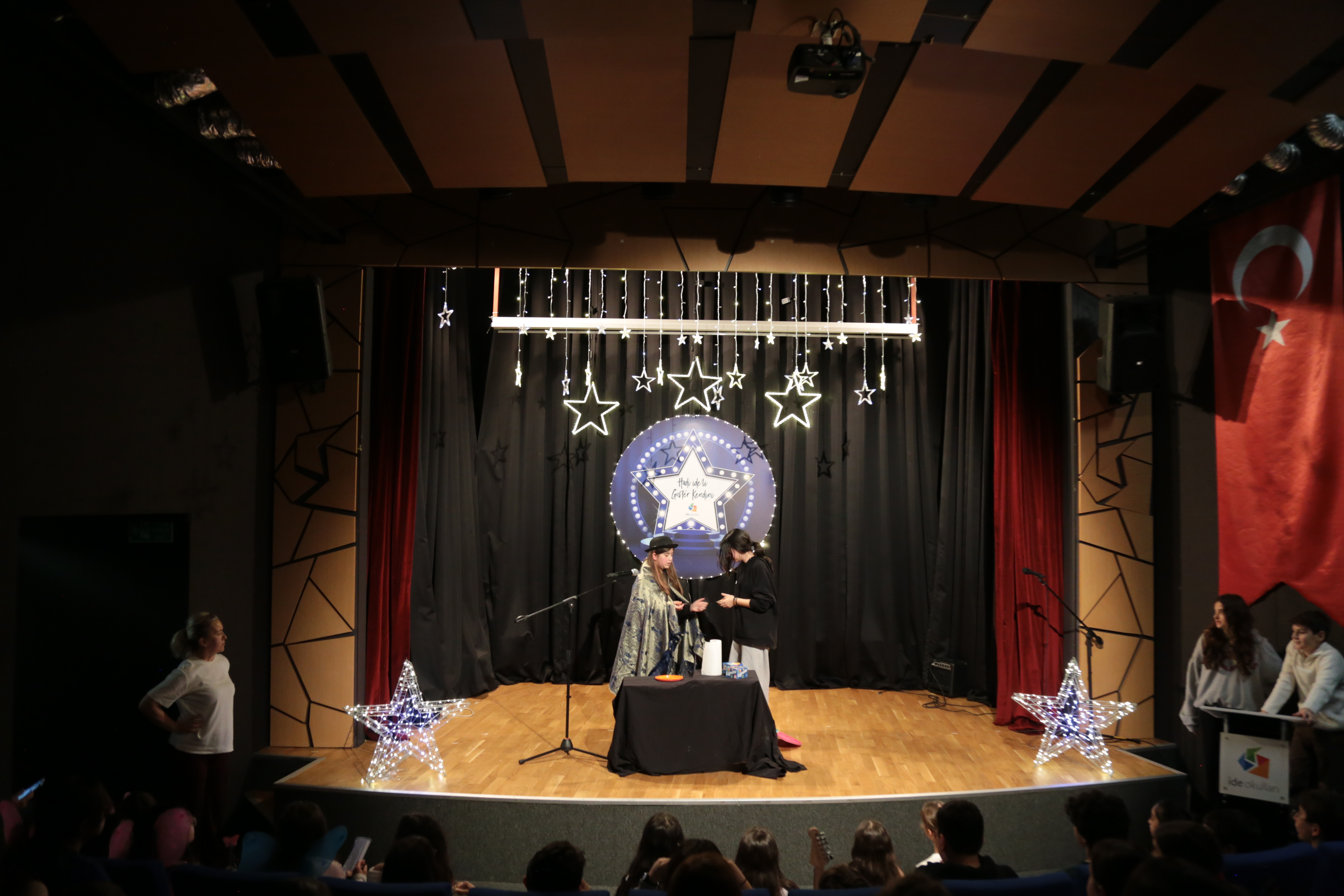 Ortaokul öğrencilerimiz; dans, müzik, şarkı ve sihirbazlık gibi çeşitli performans alanlarında sahne alarak hem bireysel hem de grup çalışmalarını izleyicilerle buluşturdu. Sahne deneyimi kazanan öğrencilerimiz, topluluk önünde kendini ifade etme, heyecan yönetimi ve özgüven geliştirme açısından önemli bir kazanım elde etti.