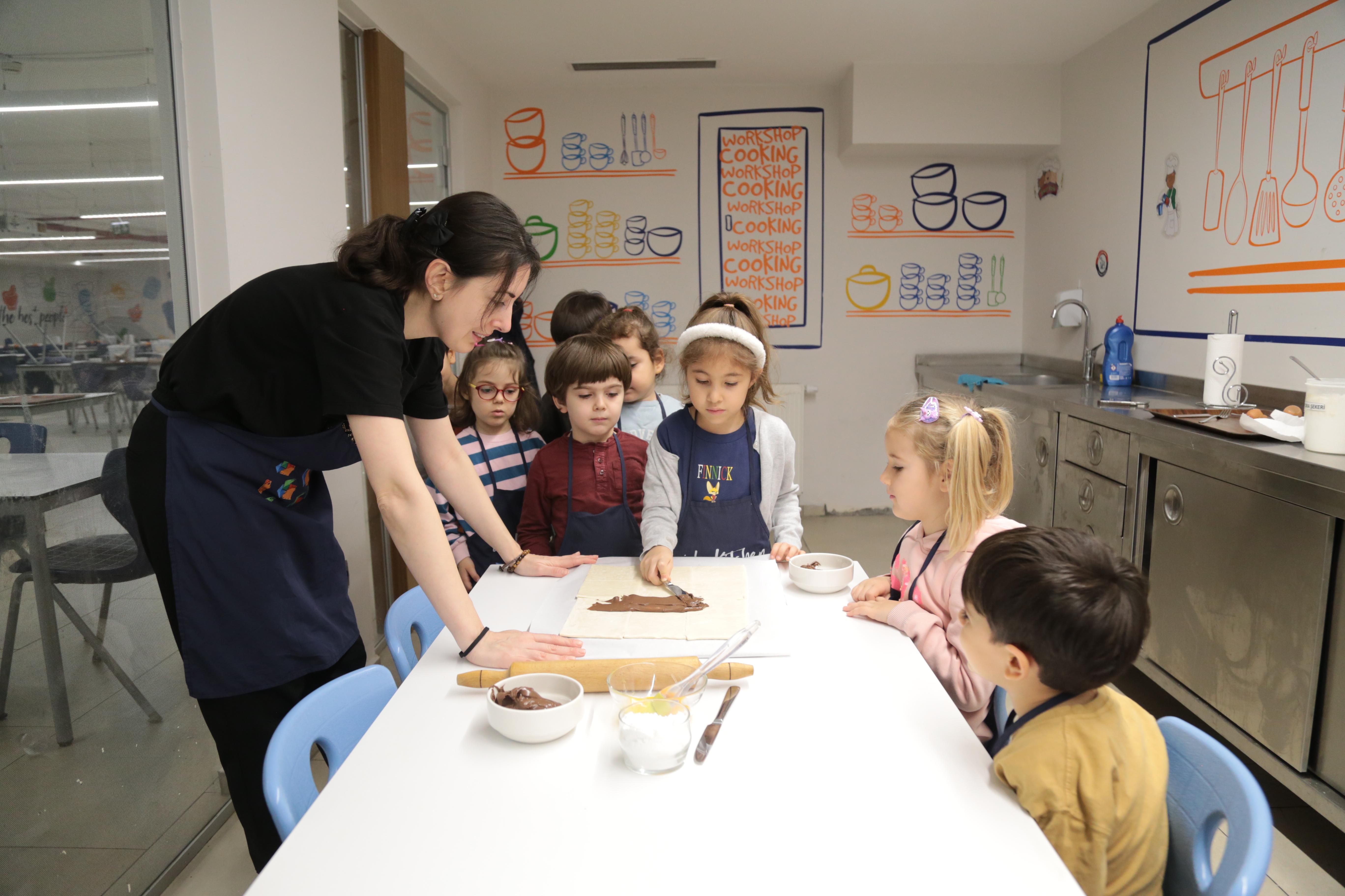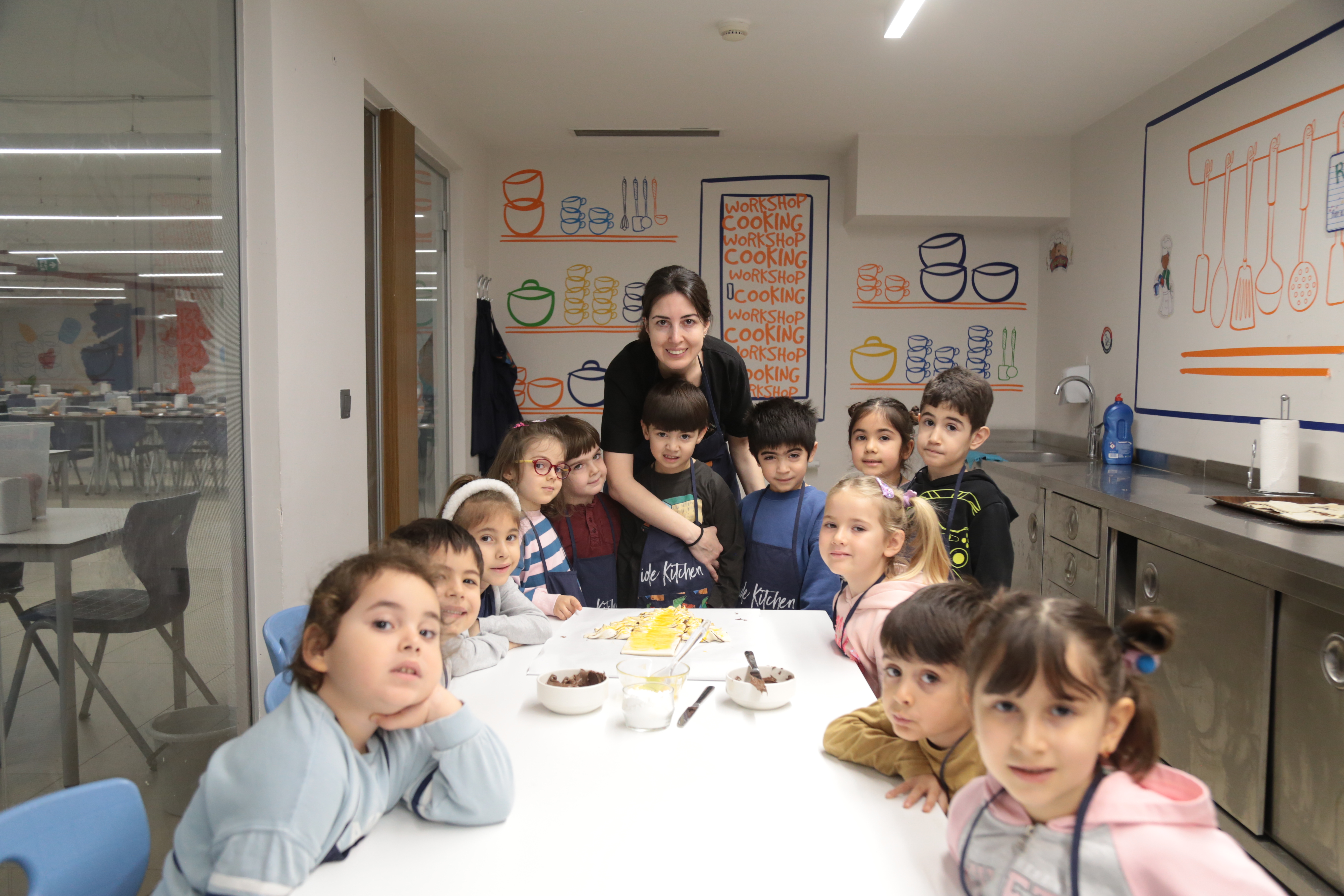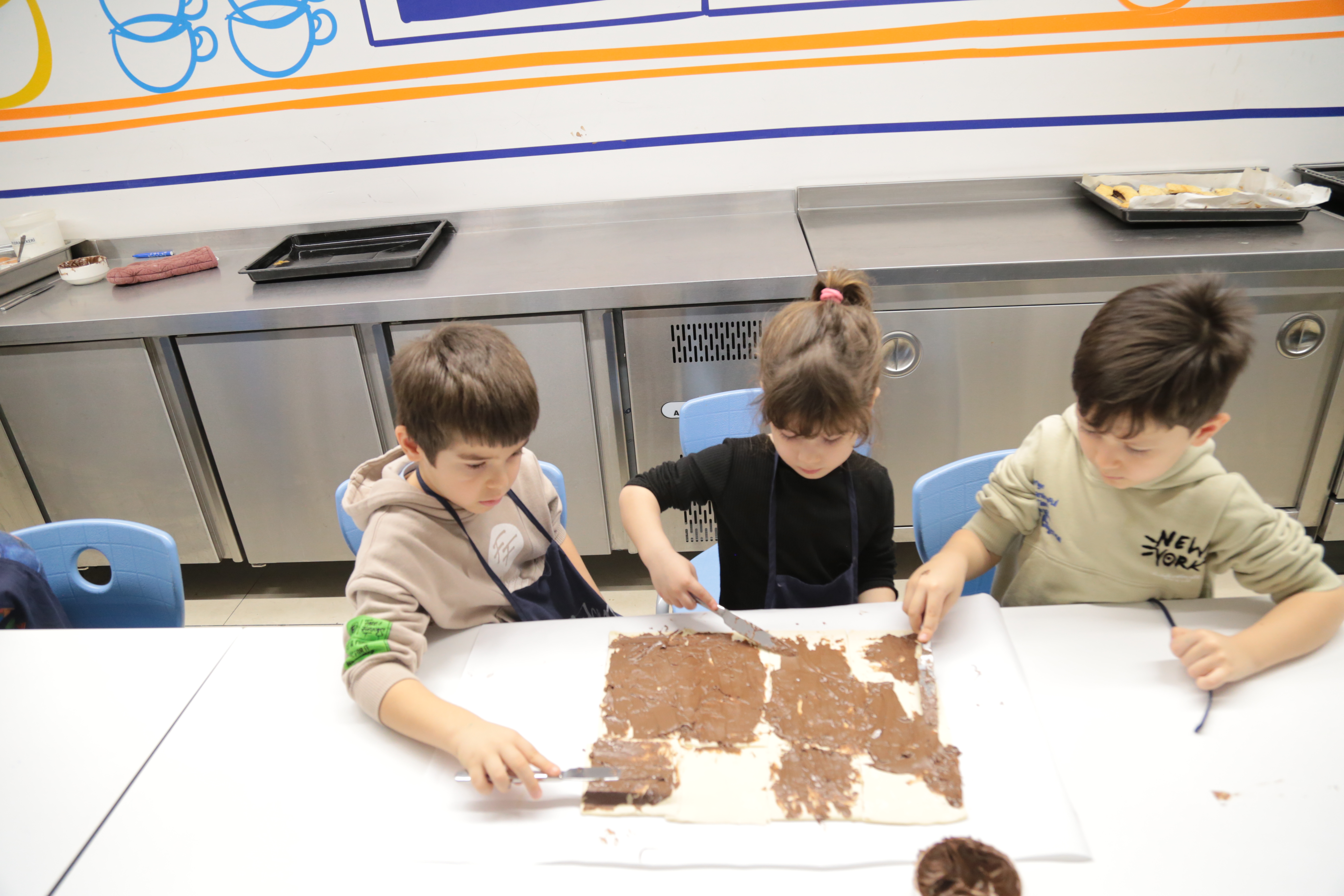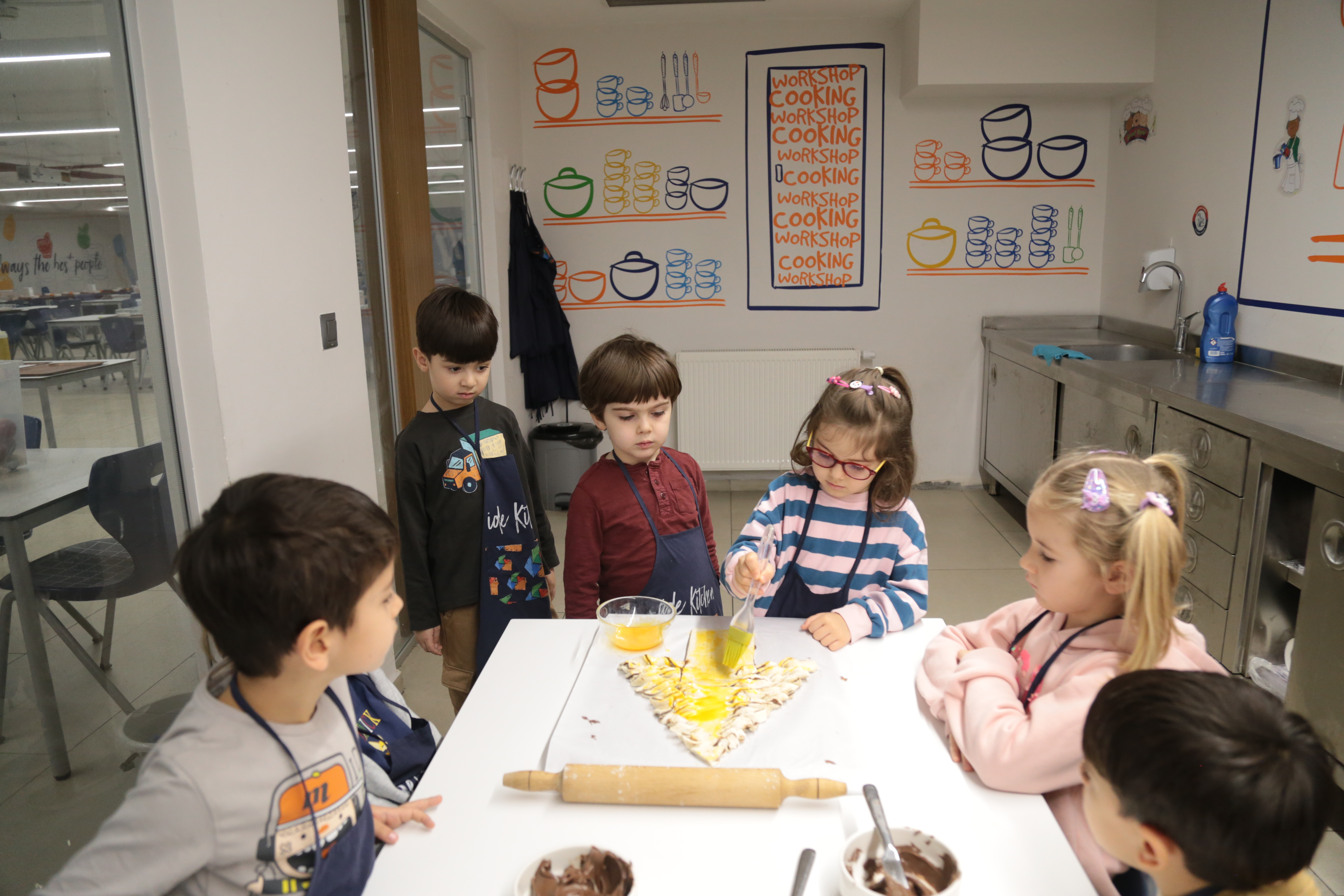 Milföy hamurunu kesip şekillendirirken ince motor becerilerini geliştiren miniklerimiz, tarifi adım adım takip ederek dikkat ve odaklanma becerilerini pekiştirdiler. Kendi tasarımlarını oluştururken yaratıcılıklarını özgürce ortaya koyan öğrencilerimiz, grup çalışmasıyla yardımlaşma ve iletişim becerilerini de güçlendirdiler.