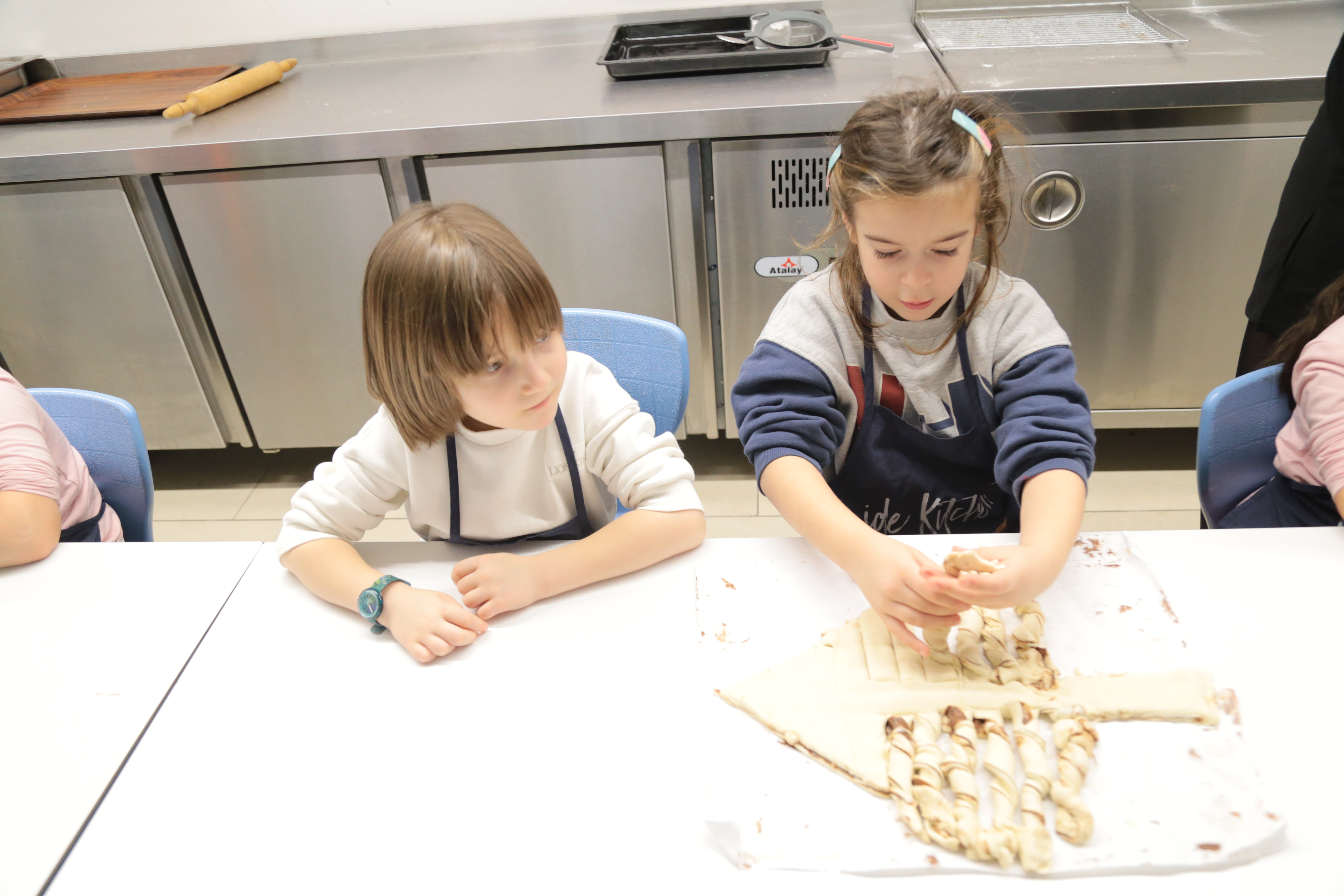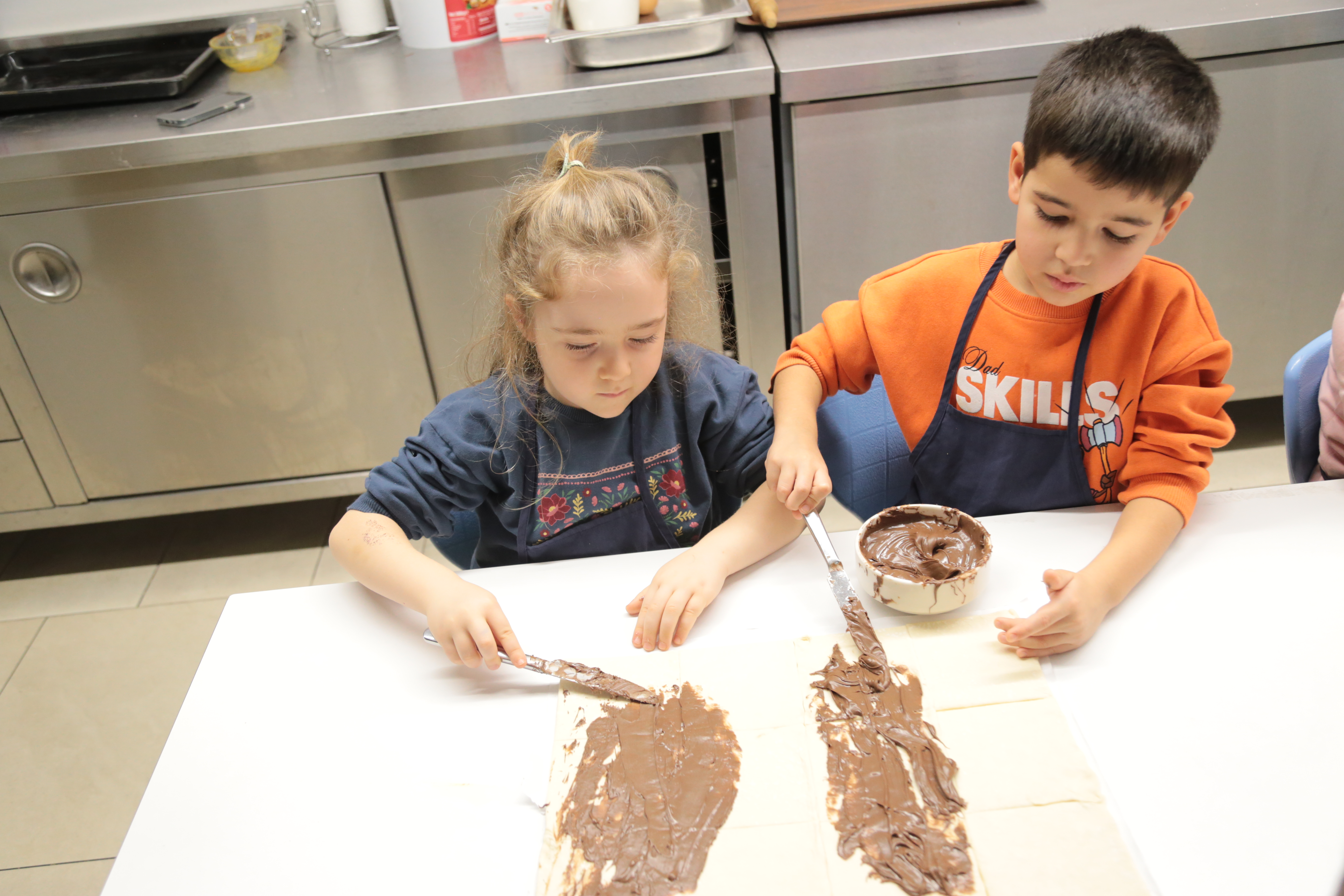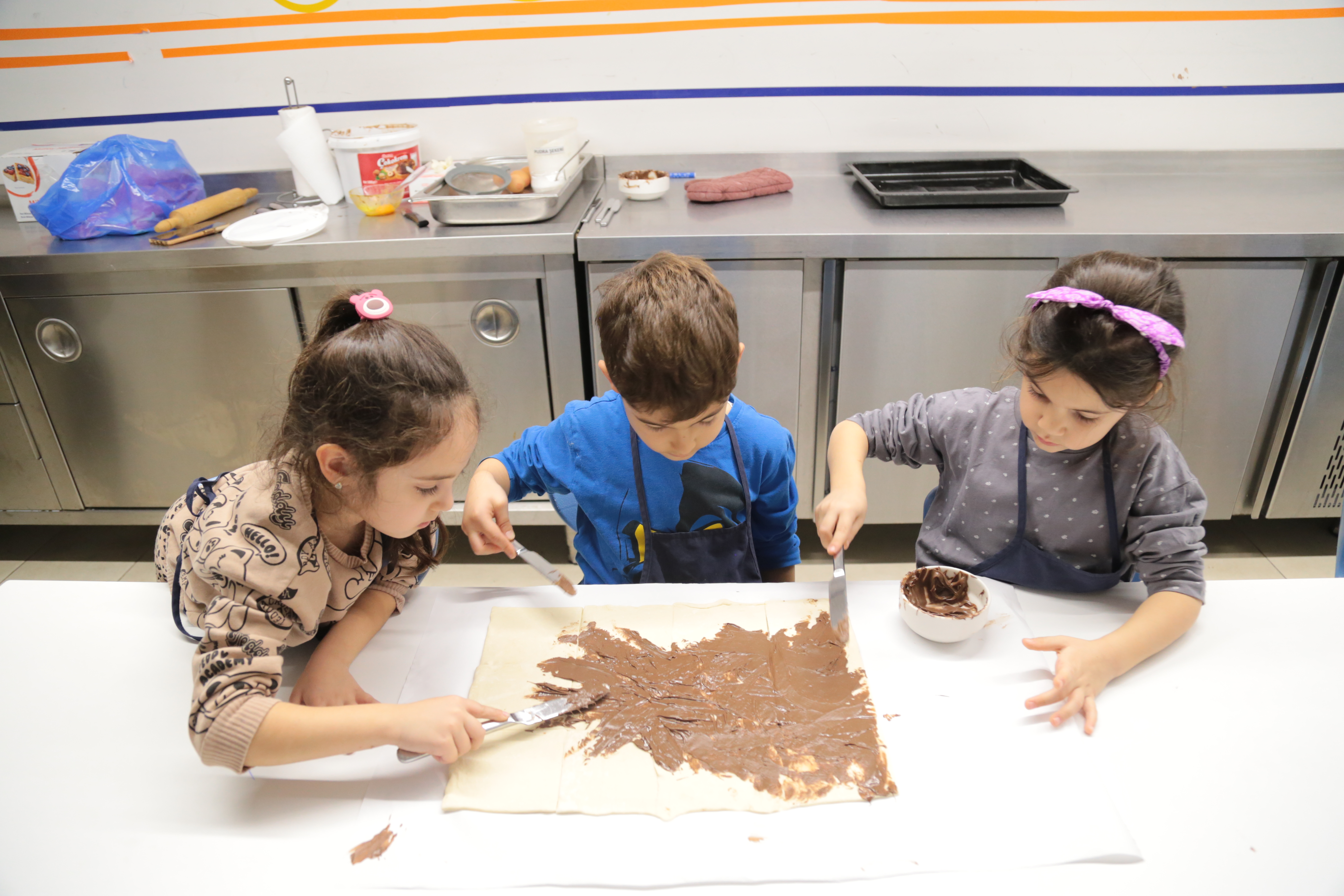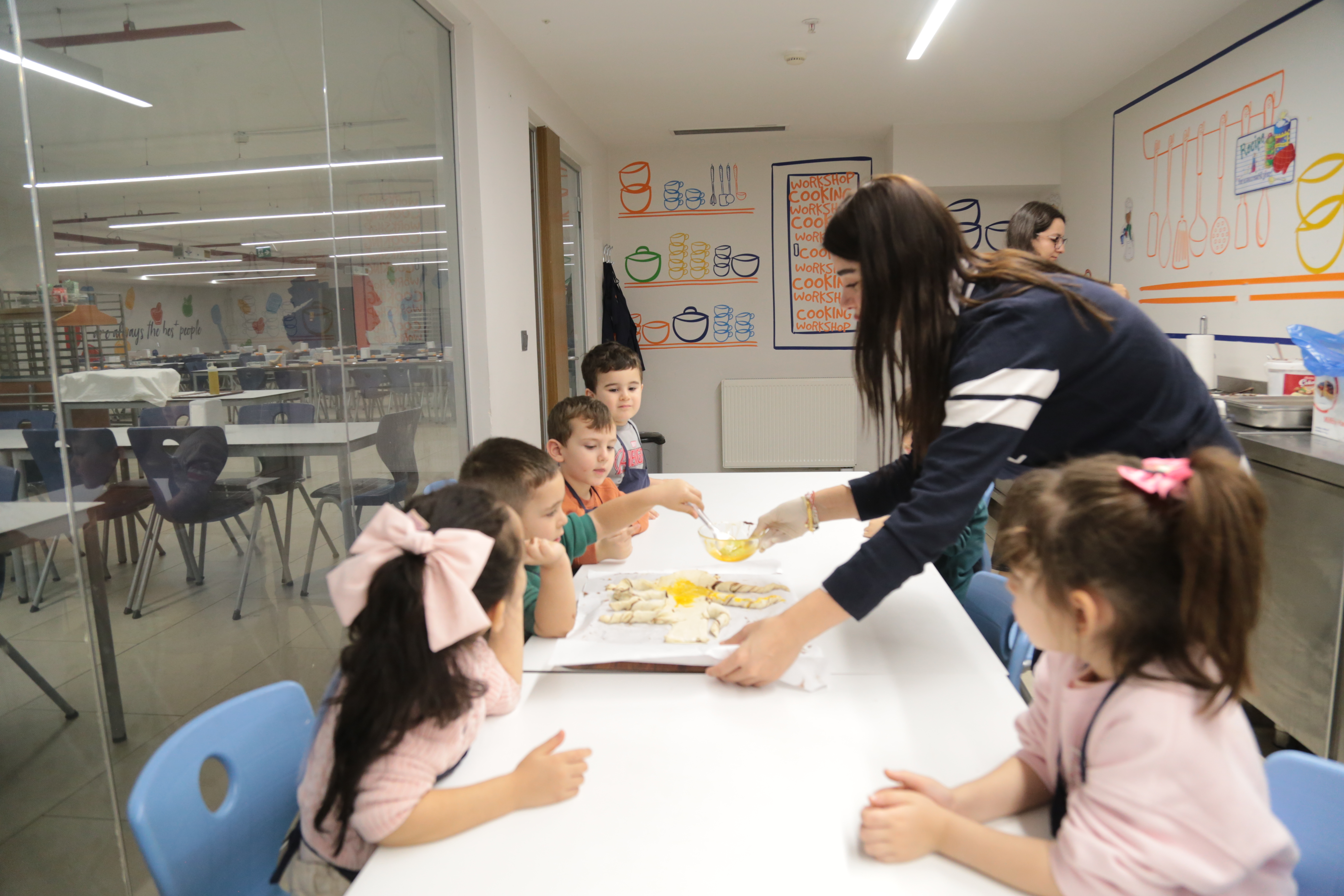 Milföy hamurunu kesip şekillendirirken ince motor becerilerini geliştiren miniklerimiz, tarifi adım adım takip ederek dikkat ve odaklanma becerilerini pekiştirdiler. Kendi tasarımlarını oluştururken yaratıcılıklarını özgürce ortaya koyan öğrencilerimiz, grup çalışmasıyla yardımlaşma ve iletişim becerilerini de güçlendirdiler.