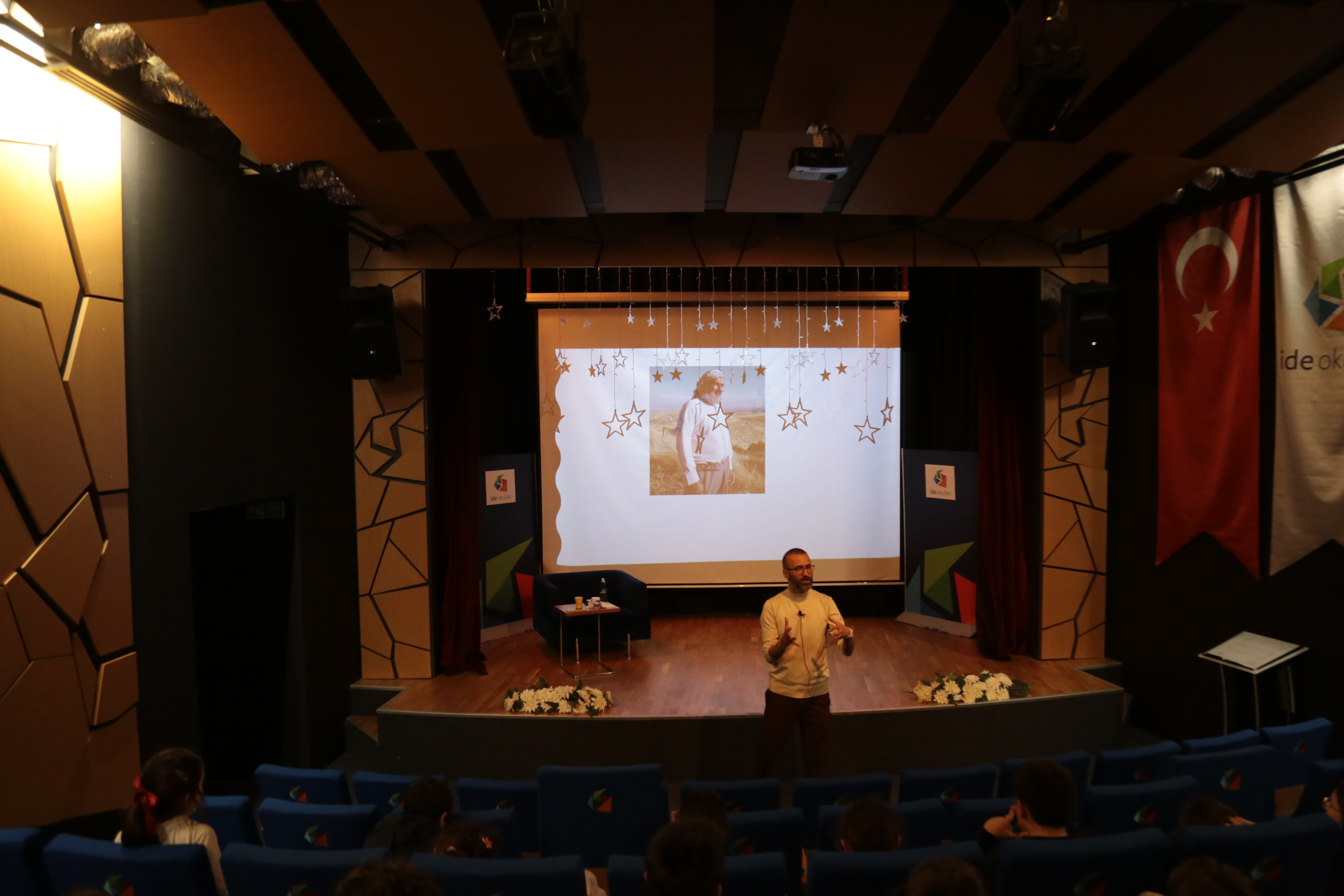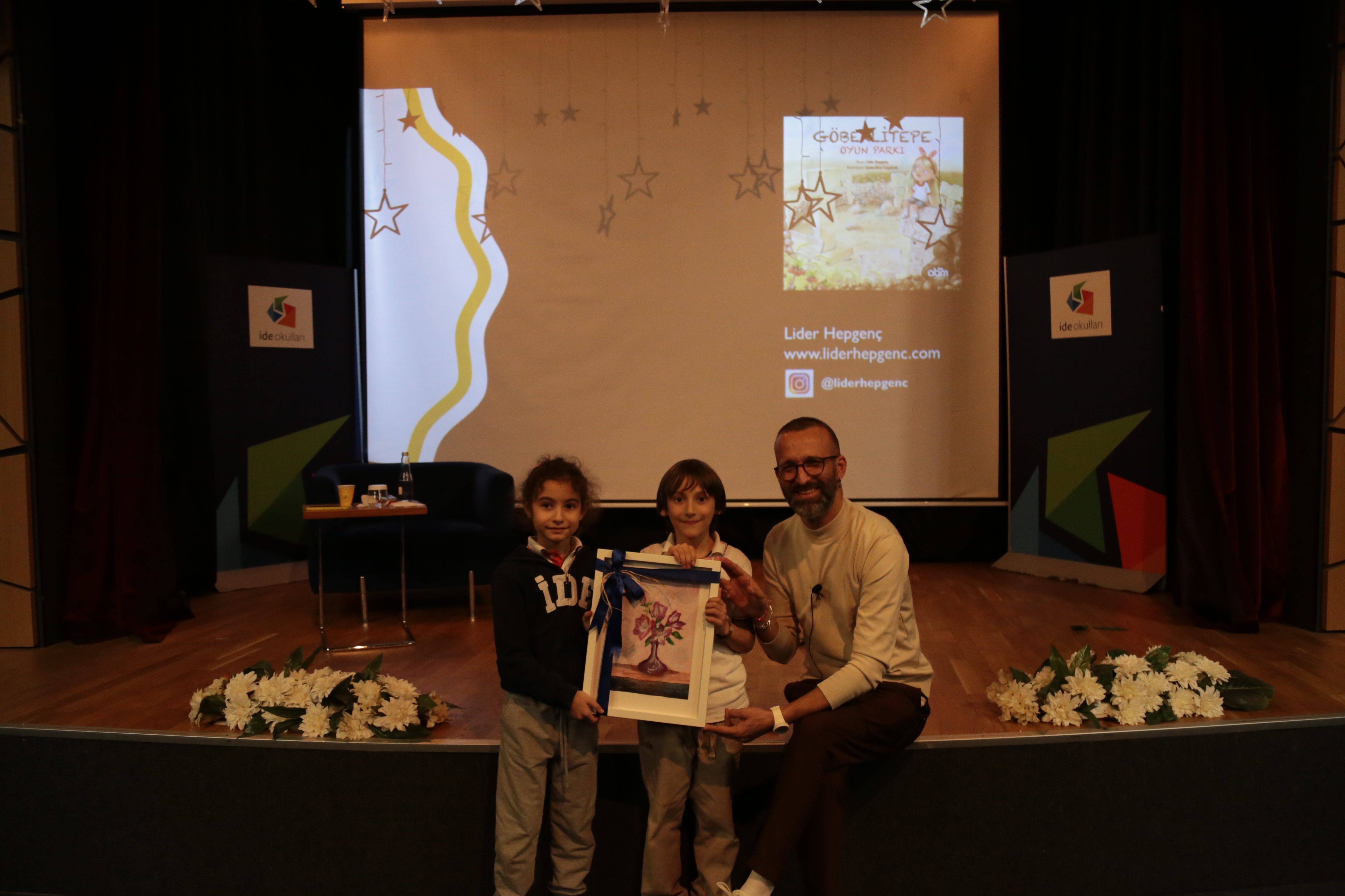 ide okulları olarak, çocuk edebiyatının sevilen kalemlerinden Lider Hepgenç’i ilkokul öğrencilerimizle buluşturmanın mutluluğunu yaşadık. Her sınıf düzeyine uygun eserleri bulunan değerli yazarımız, öğrencilerimizle gerçekleştirdiği söyleşi sırasında kitapların ruhunu doğrudan onlara aktardı ve interaktif oyunlarla kitaplara farklı bir bakış açısıyla yaklaşmalarını sağladı.