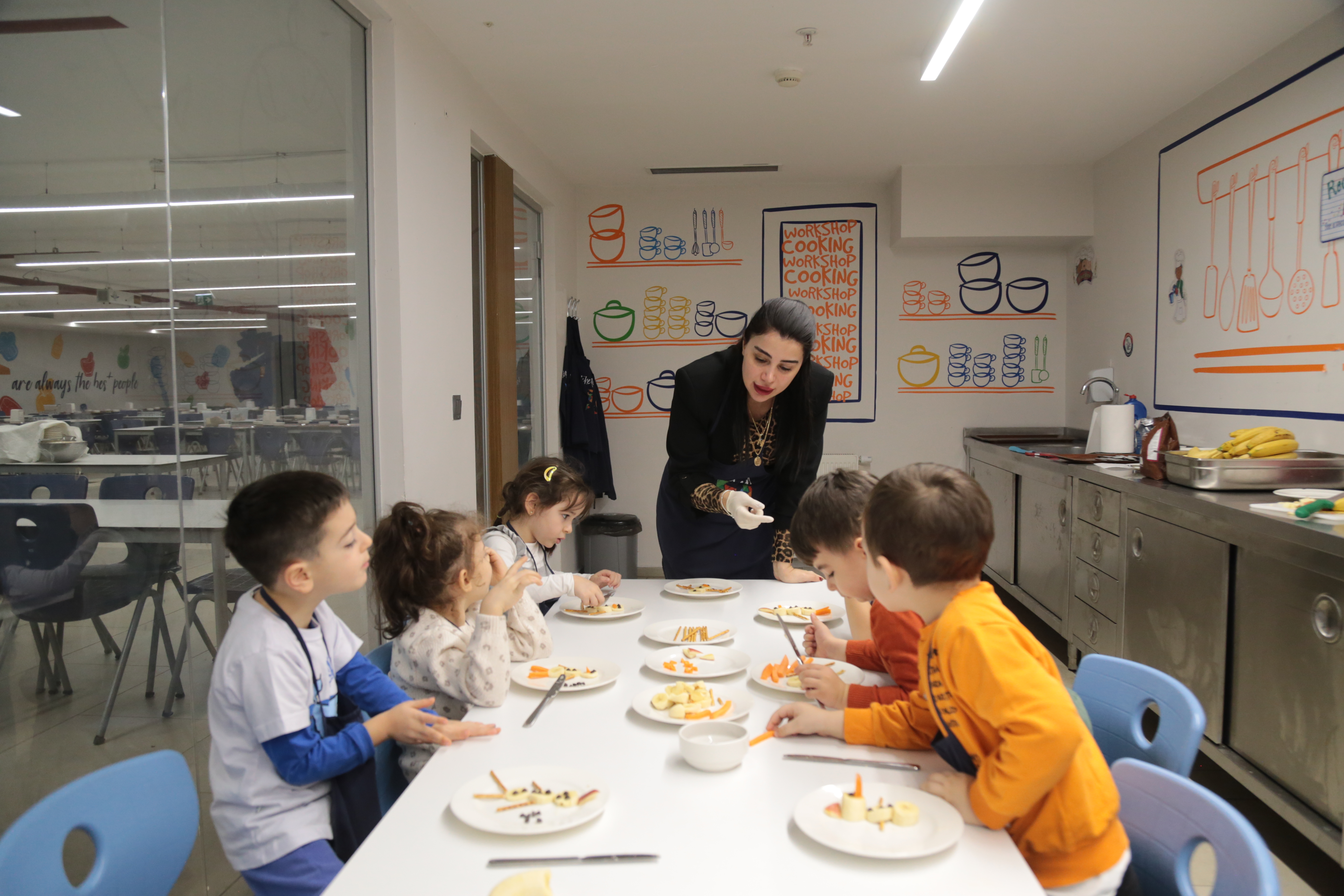 ide okulları anaokulu öğrencileri, ide Mutfak atölyesi dersinde gerçekleştirdikleri “Muzdan Kardan Adam” etkinliğiyle hem üretmenin hem de öğrenmenin keyfini yaşadı. Günlük yaşam becerilerini destekleyen bu uygulama, çocuklarımızın mutfak ortamında güvenli ve planlı çalışma deneyimi kazanmalarını amaçladı.