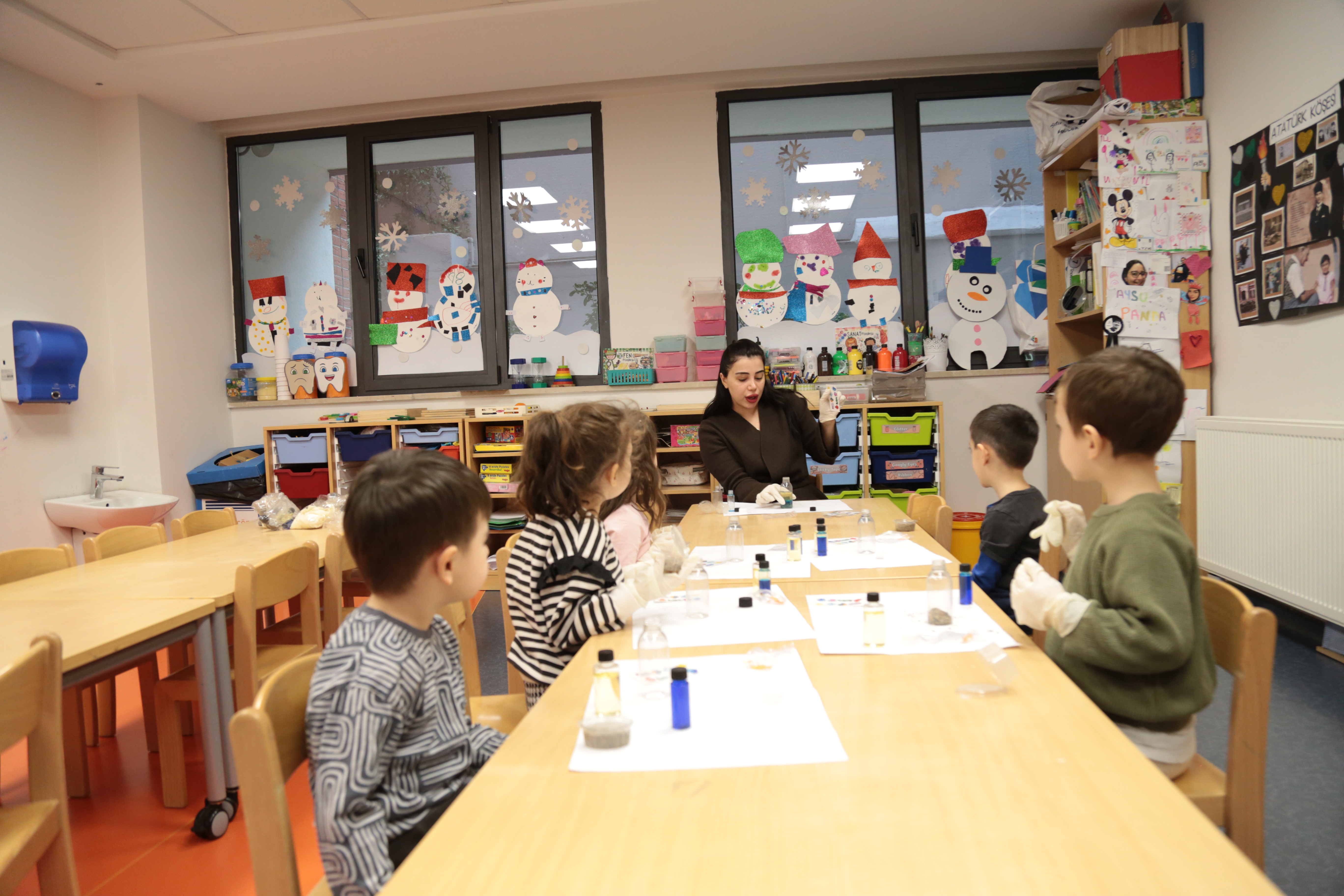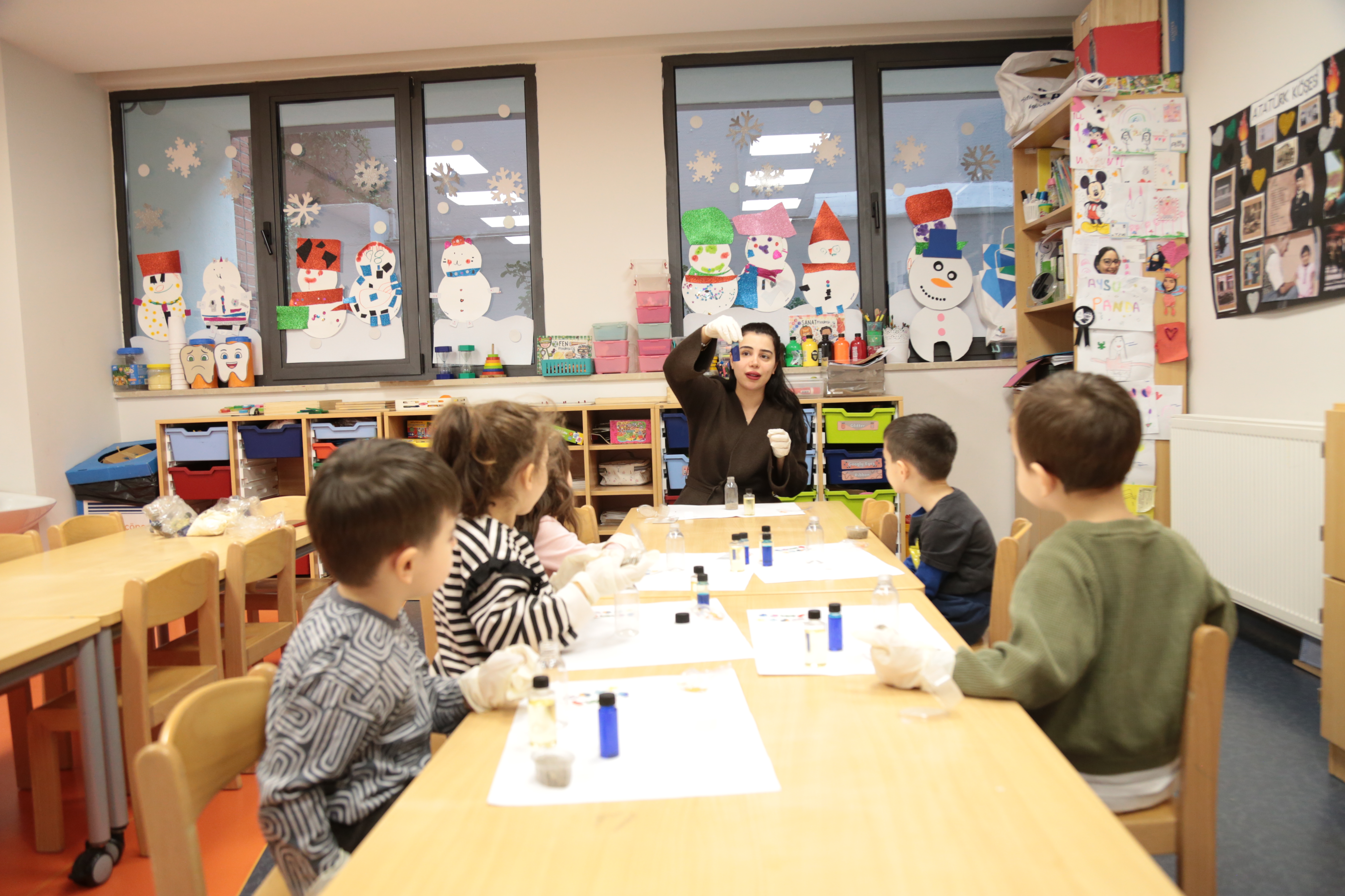ide okulları anaokulu 4 yaş öğrencileri, Fen ve Doğa dersi kapsamında “Okyanusun Dünyası” temalı deney etkinliğiyle denizlerin gizemli ekosistemini keşfetti. Yaş gelişim özellikleri dikkate alınarak planlanan uygulama, çocuklarımızın somut deneyimler aracılığıyla öğrenmelerini destekleyecek şekilde kurgulandı.
