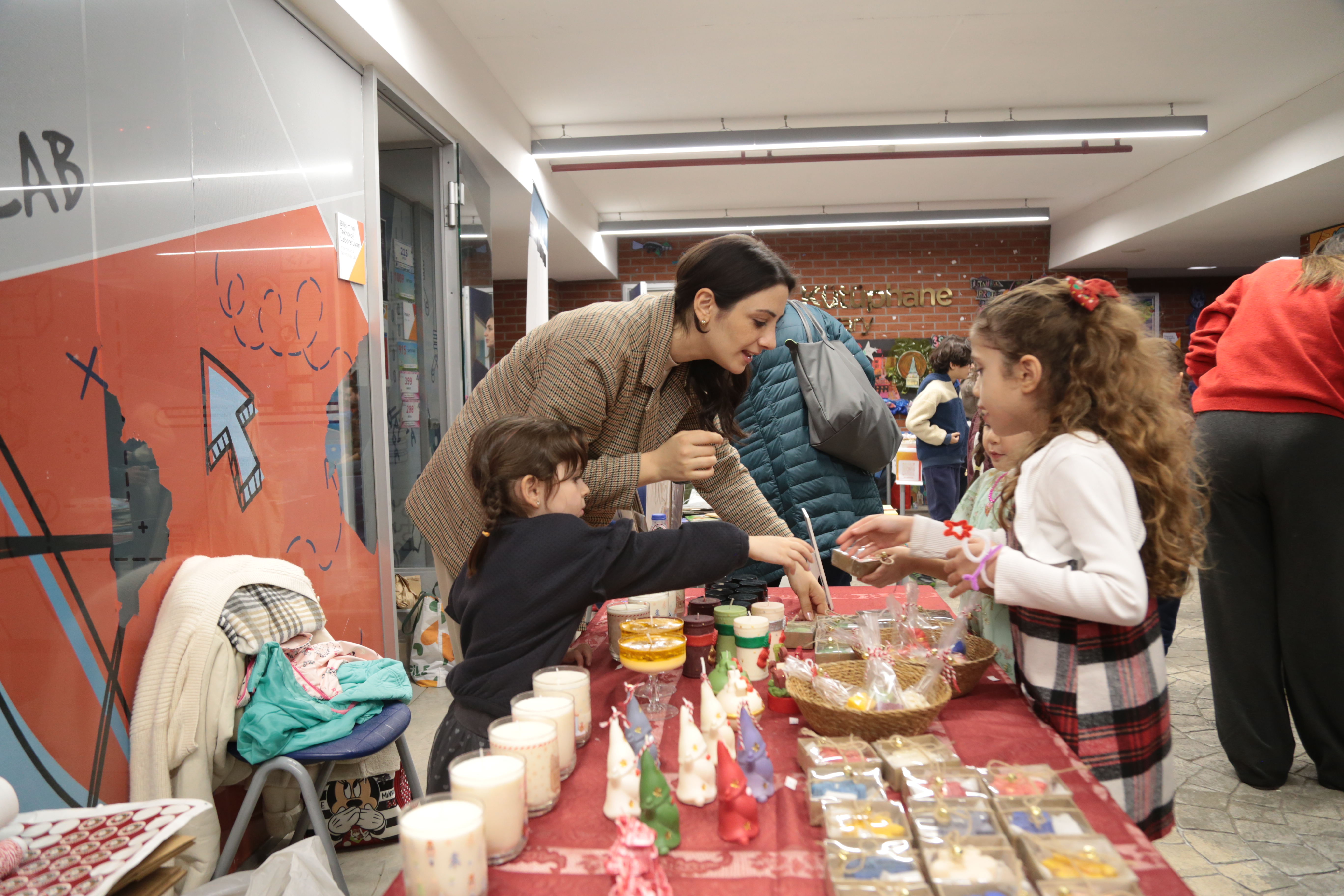 Öğrencilerimiz pamuk şeker, popcorn ve birbirinden lezzetli yiyecek-içecek ikramlarıyla bu özel günün tadını çıkarırken; el emeği ürünler ve hediyelik eşya stantları büyük ilgi gördü.