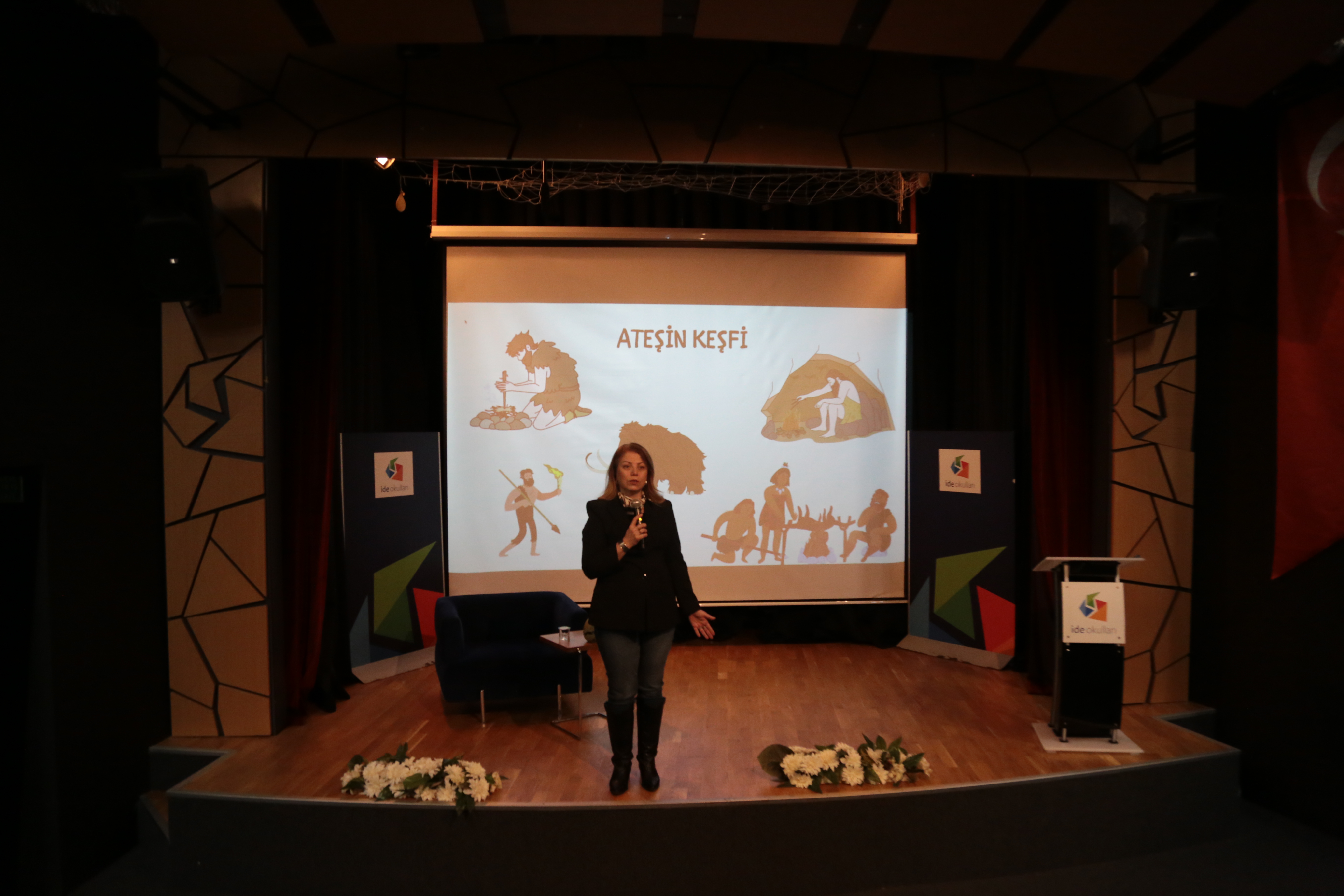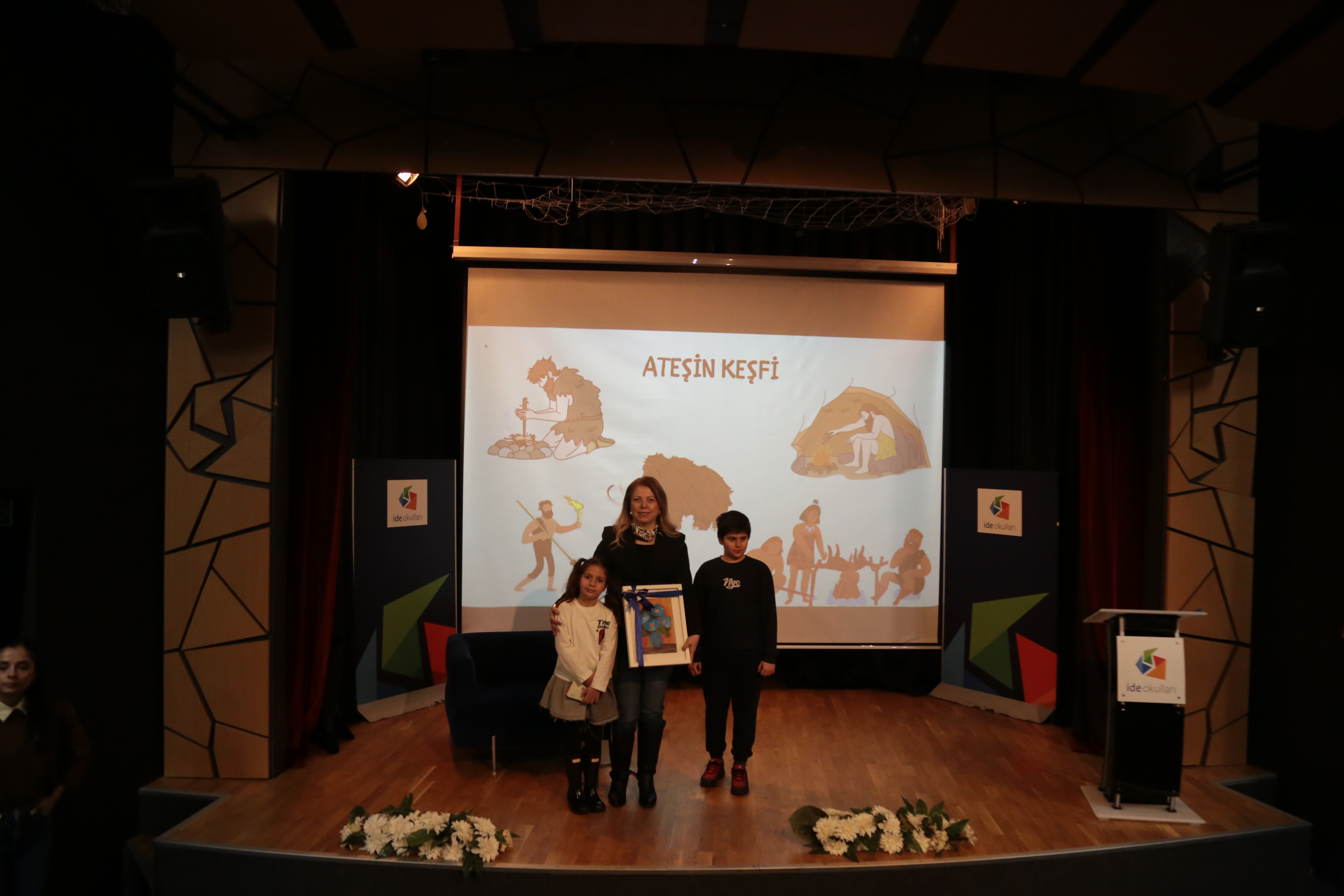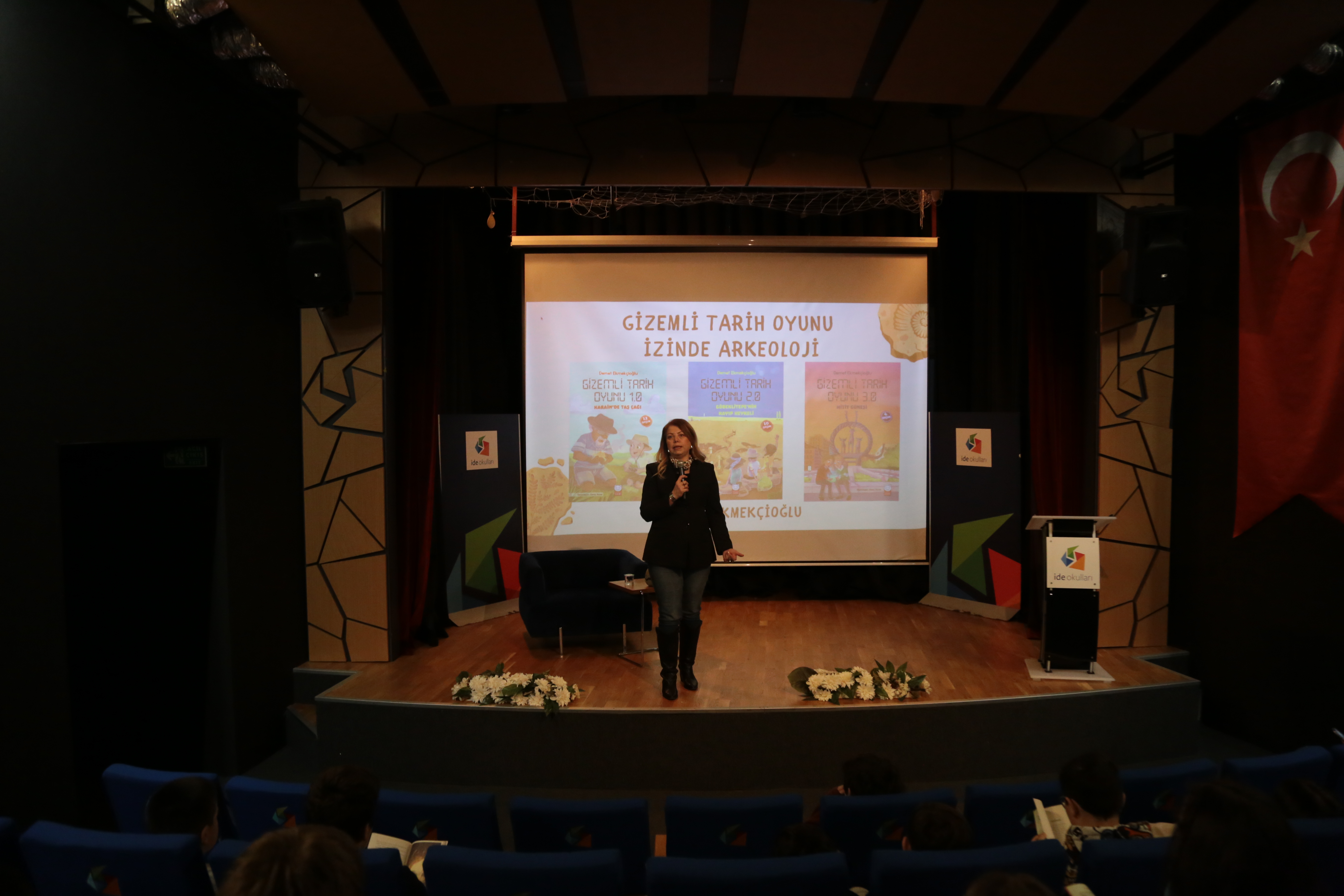 ide okulları 4. sınıf öğrencileri, güdümlü okuma çalışmaları kapsamında ele aldıkları Gizemli Tarih Oyunu 1.0: Krain’de Taş Çağı kitabının yazarı Demet Ekmekçioğlu ile anlamlı bir söyleşide bir araya geldi. Öğrencilerimiz, okuma sürecinde zihinsel olarak yapılandırdıkları karakter ve olayları yazarın anlatımıyla yeniden keşfetmenin heyecanını yaşadı.
